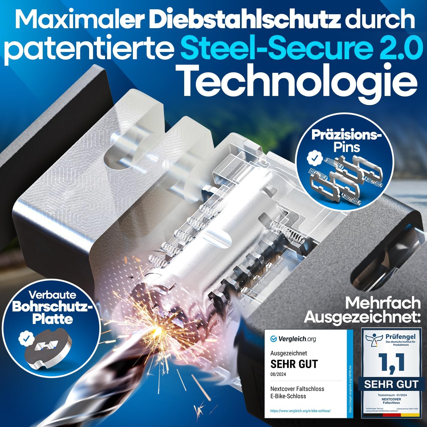 Jetzt entdecken: NEXTCOVER® FoldOne Folding Bicycle Lock – The Original – with SteelSecure Technology and 3 Keys I Robust Bicycle Lock Folding Lock High Security with Bracket 100 cm