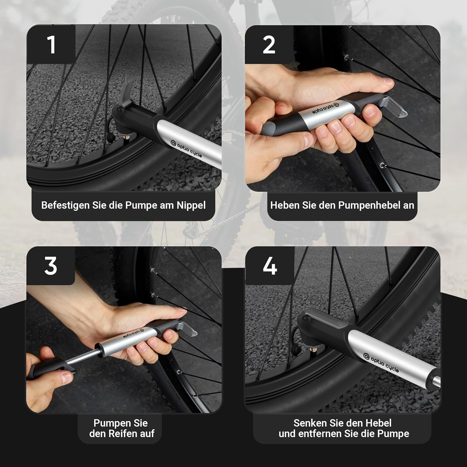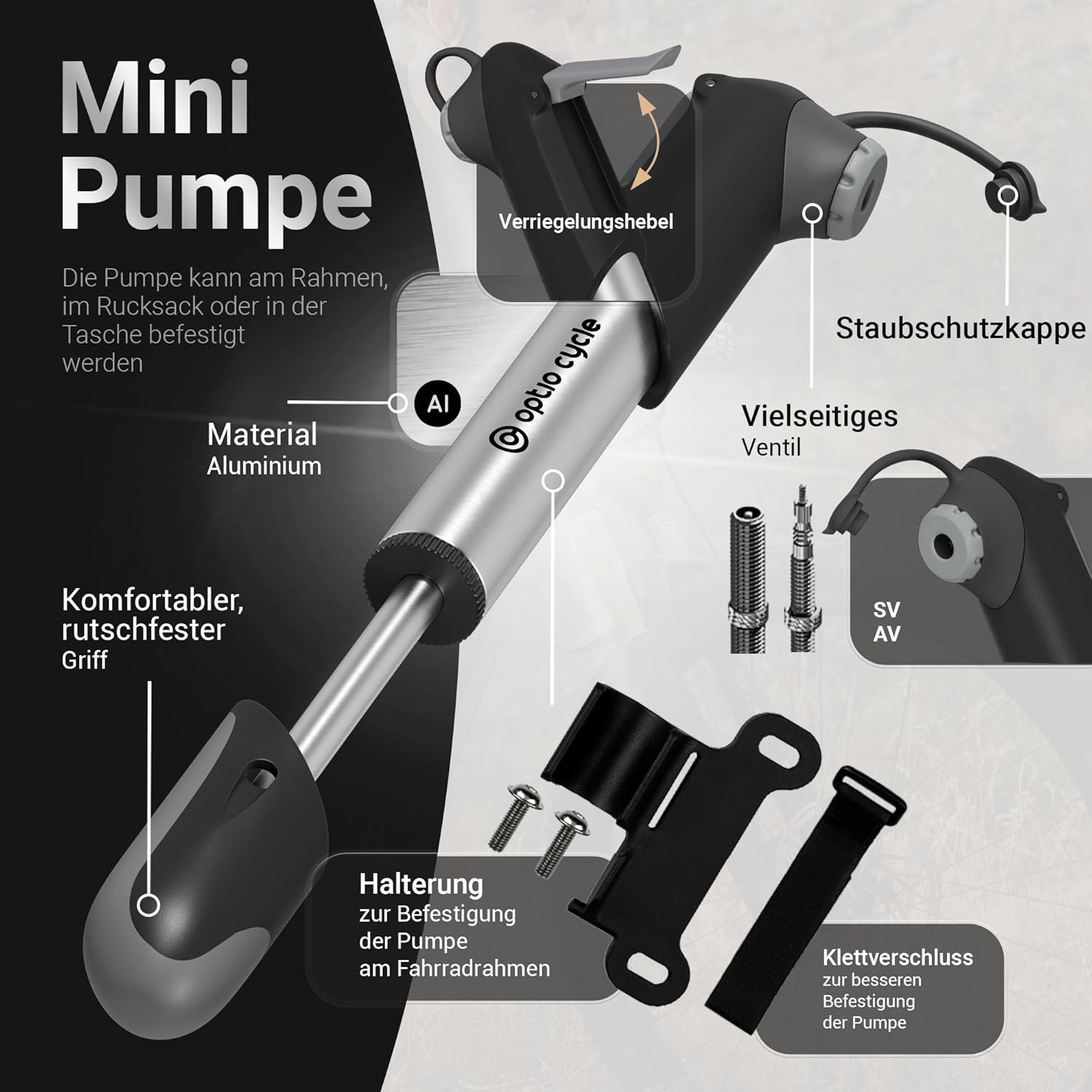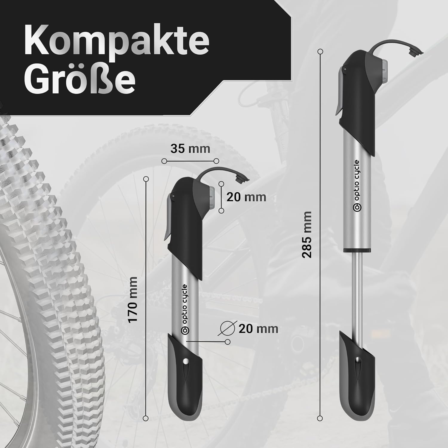 Top-Angebot: Optio Cycle Mini Fahrradpumpe 120 PSI (8,3 Bar) Luftpumpe Fahrrad | Alle Ventile | Kleine Tragbare Handpumpe | Bike Pump | Alle Ventile