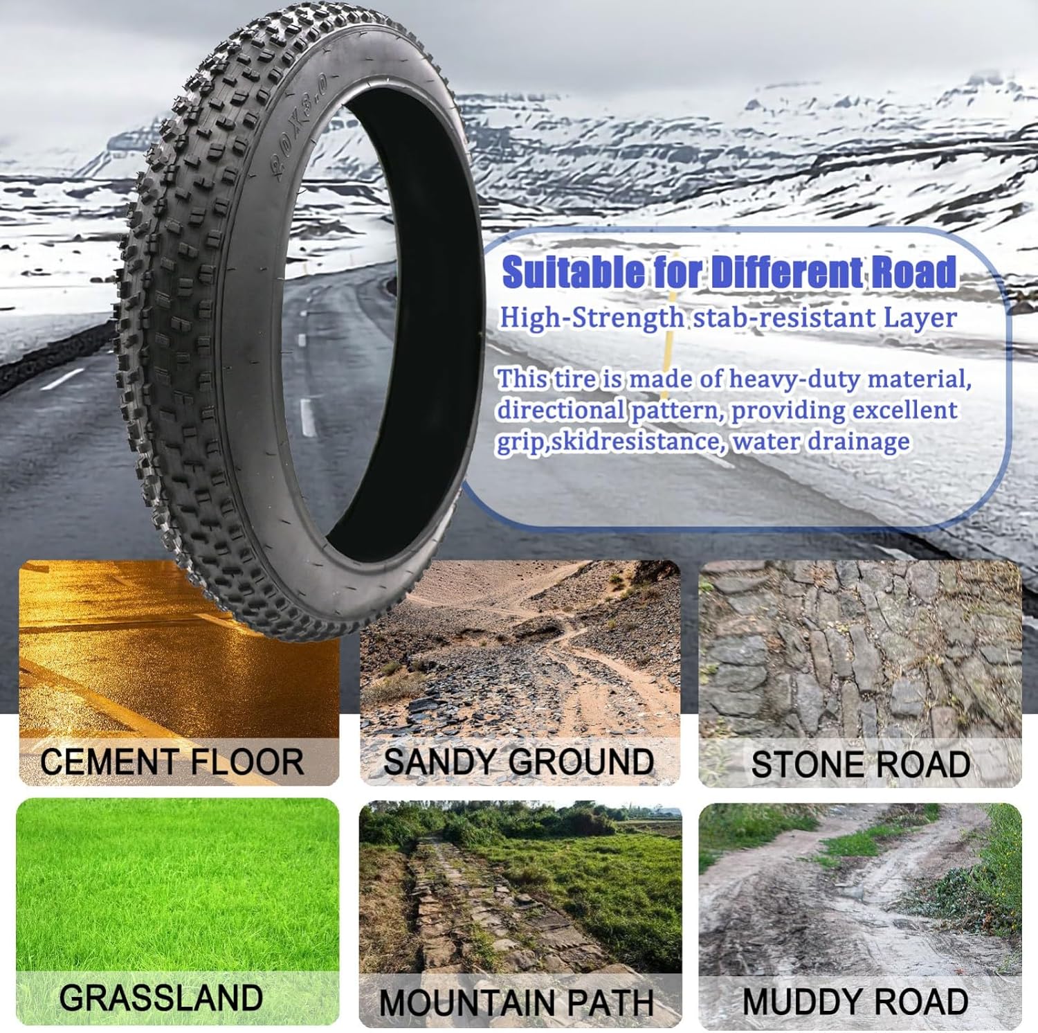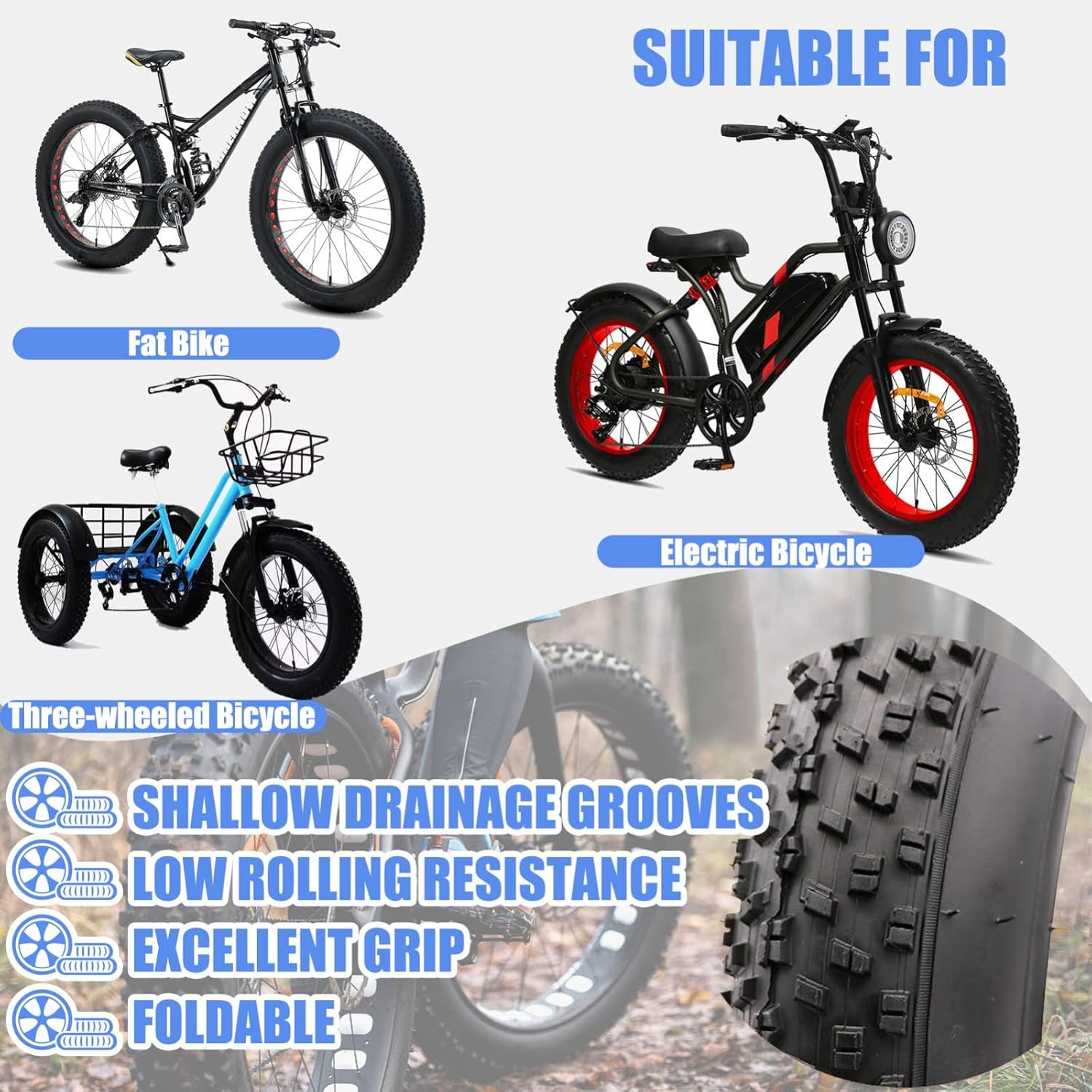 Top-Angebot: Pack of 2 Bike Fat Tyre 20/24/26 x 3.0/4.0 Inch Bicycle Fat Tyre Folding Bead Tyre Electric Bicycle Tyre Compatible Wide Mountain Snow Bicycle 30 PSI