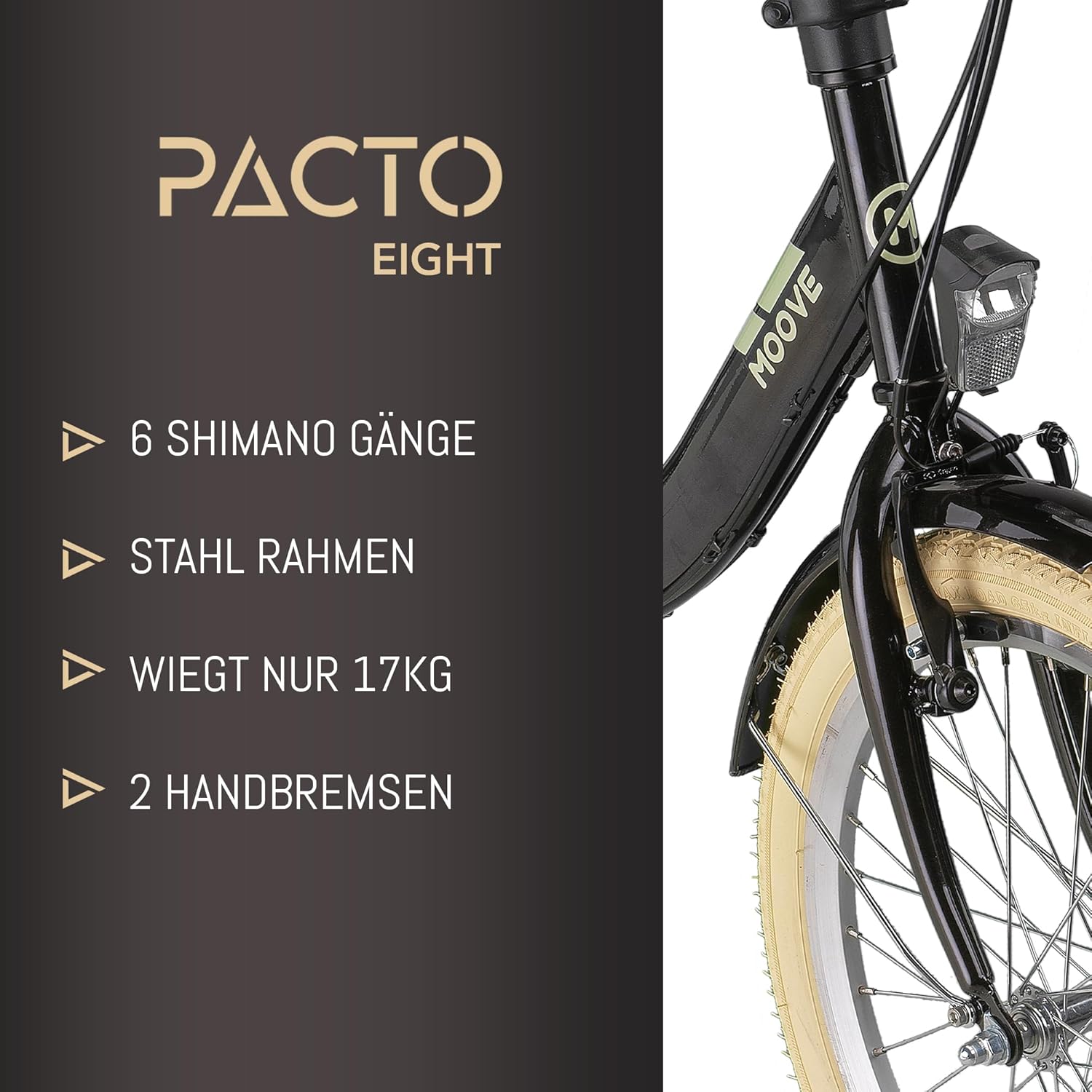 Das PACTO – Eight high-quality folding bike, 27 cm, steel frame, 20 inches, double-walled aluminium rims, 6 speed Shimano front derailleur, folding bike, folding bike, foldable compact folding bike, ist ideal für Alltagspendler, die ein zuverlässiges Fahrrad suchen.
