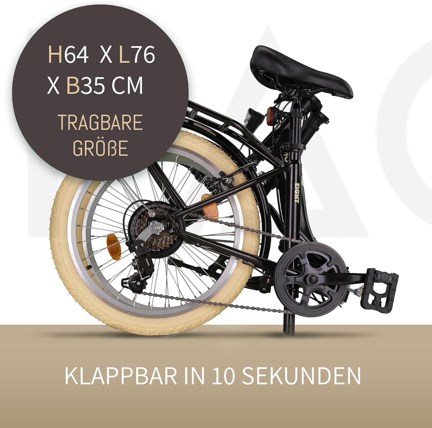 Top-Angebot: PACTO – Eight high-quality folding bike, 27 cm, steel frame, 20 inches, double-walled aluminium rims, 6 speed Shimano front derailleur, folding bike, folding bike, foldable compact folding bike,