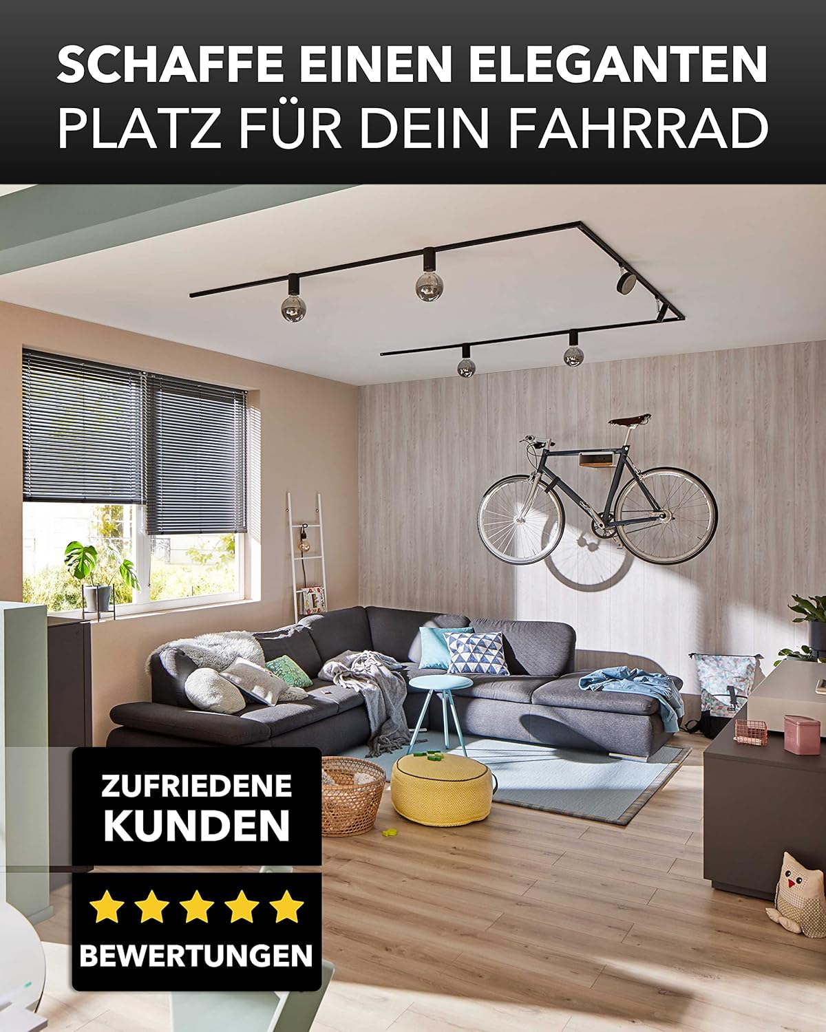 Top-Angebot: PARAX Bicycle Holder – Wall Mount for Bicycle – Indoor Bicycle Storage – Bicycle Suspension Made of Aluminium and Wood – Bicycle Rack in White – M