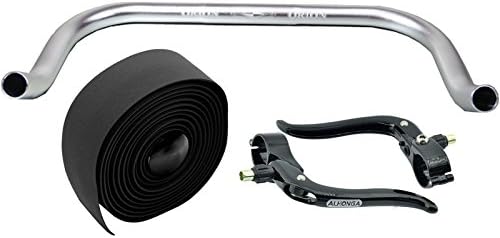 Jetzt entdecken: Permanent-Fahrrad Bullhorn Fixie Single Speed Road Bike Triathlon Handlebar Silver 400 mm with Matching Brake Lever and Black Handlebar Tape