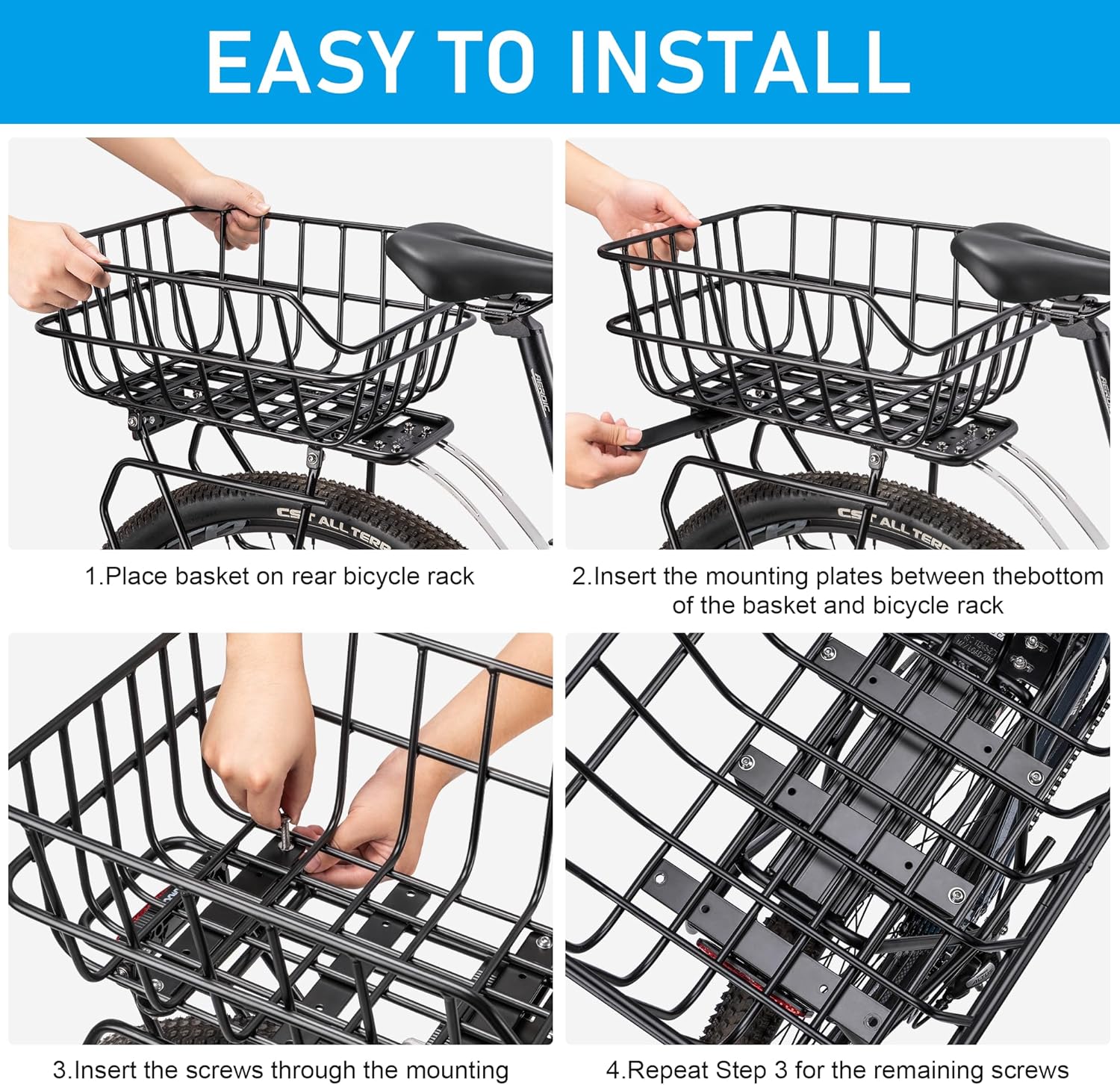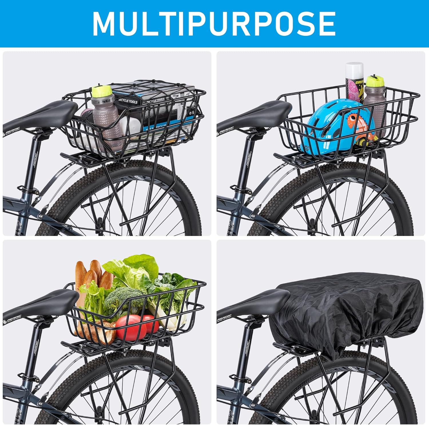 Top-Angebot: PINNAMAX Bicycle Basket Large Rear for Pannier Rack, Bicycle Basket with Net and Cover, Black