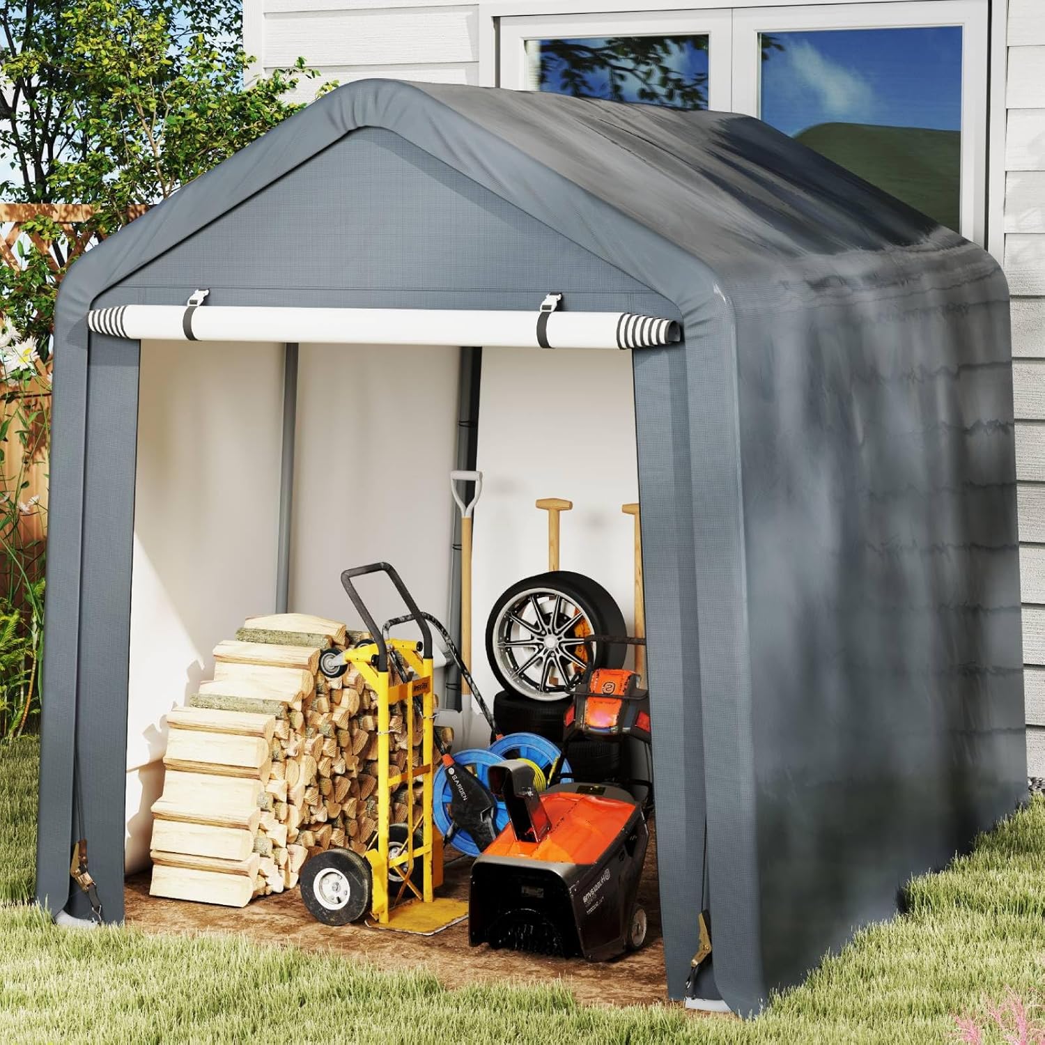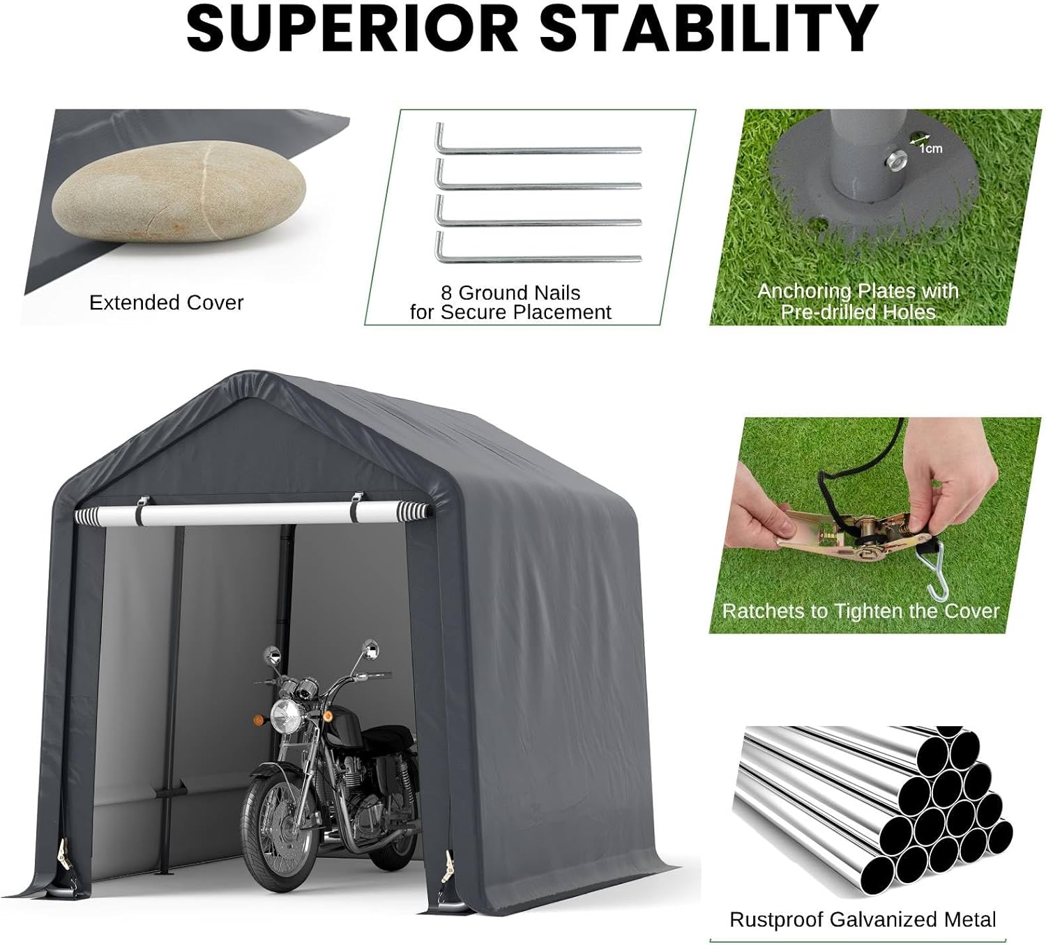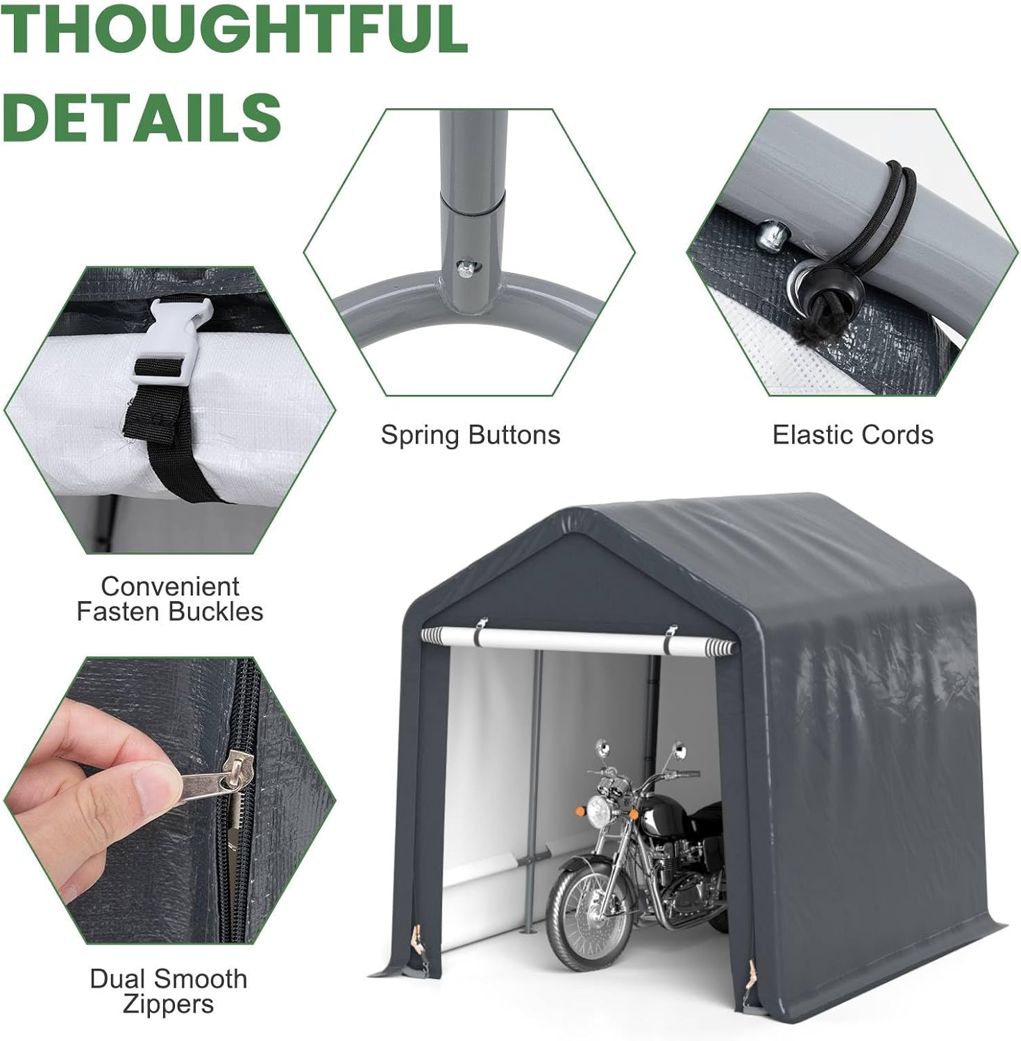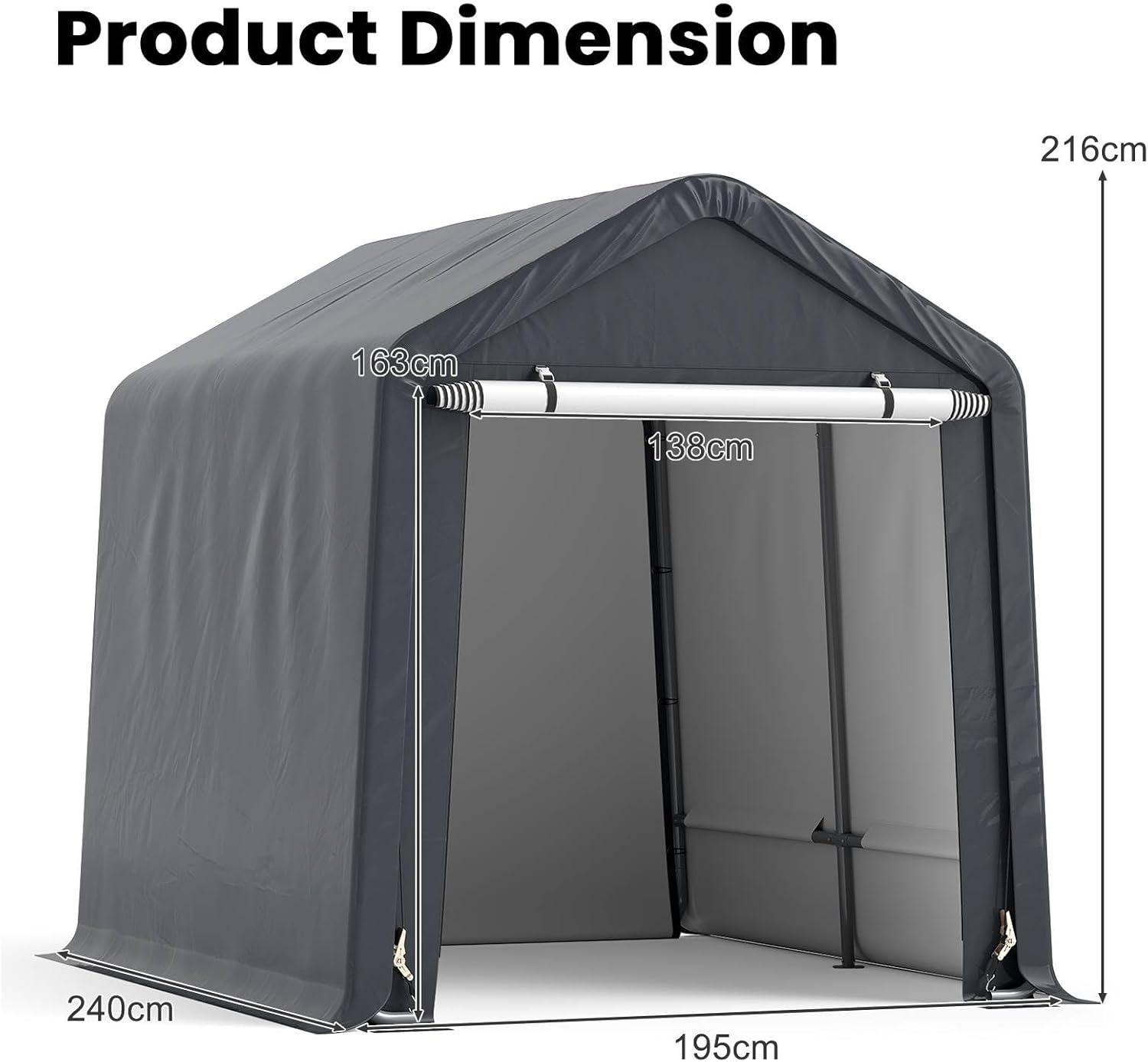 Top-Angebot: PLKEQS Verzinkter Stahlrahmen Wasserdichtes Fahrradaufbewahrungszelt mit 8 Bodennägeln Roll Up Reißverschluss Tür & Ratschengurt Outdoor Garage Fahrrad Abdeckung Unterstand