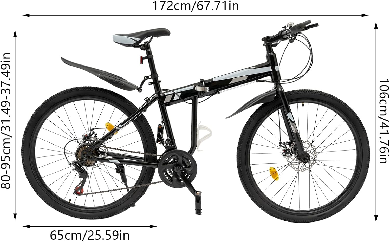 Jetzt entdecken: pochcicou 26 Inch Mountain Bike, 21 Speed Adult Bike, Height Adjustable 92-97 cm, Load Capacity 150 kg, Foldable Bicycle for Girls, Boys, Men and Women