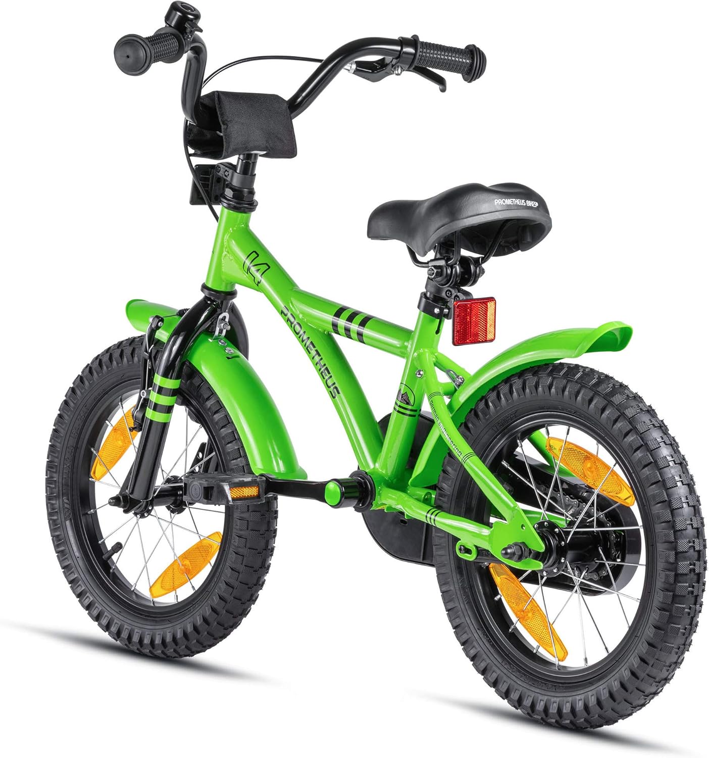 Top-Angebot: PROMETHEUS® 14 INCH KIDS BIKE IN COLOUR GREEN BLACK + with heavy duty removable Stabilisers + Backpedalling brake | For safe and carefree joy of playing kids aged from 4 years | 14s BMX Edition
