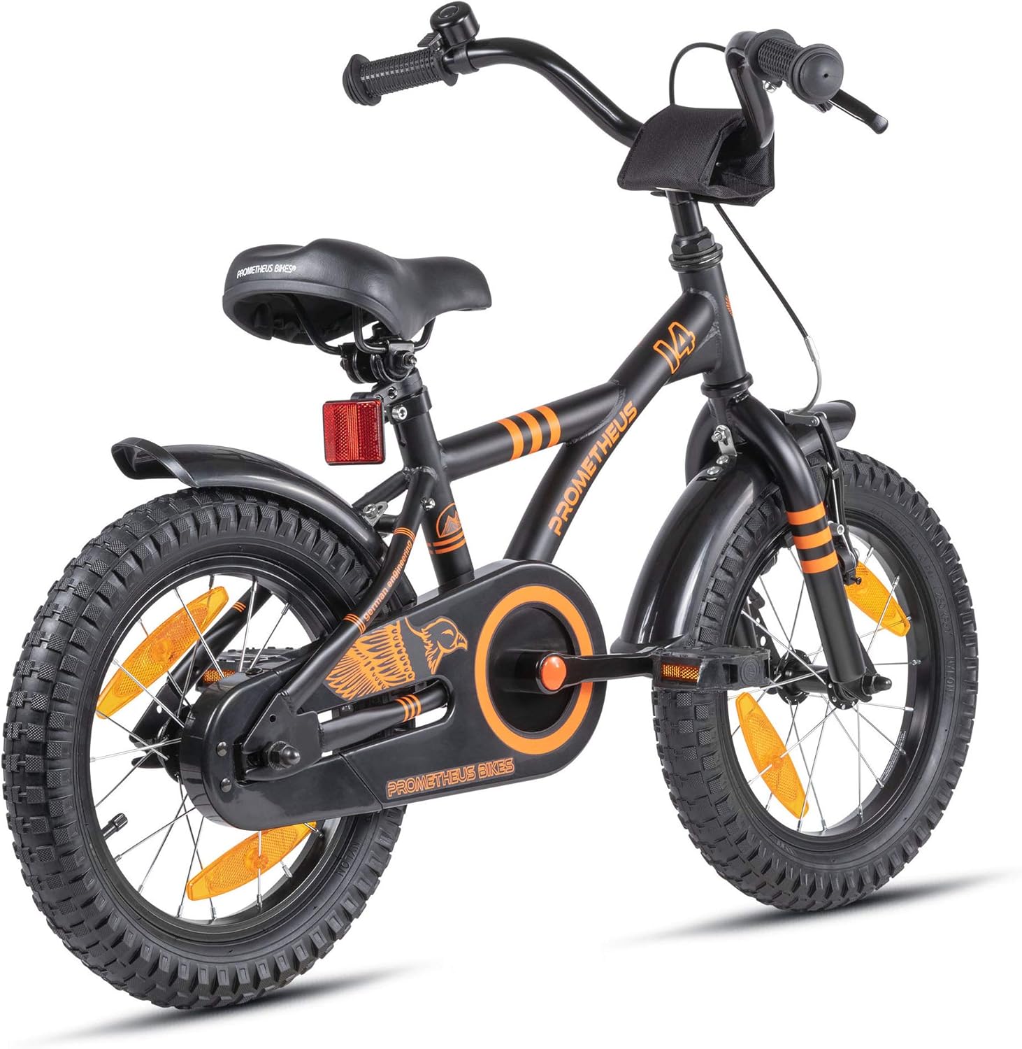 Top-Angebot: PROMETHEUS BICYCLES Children’s Bicycle 14 Inch from 4 Years – Children’s Bicycle Girls Boys Bicycle Children with Stabilisers Coaster Brake in Black Matt Orange