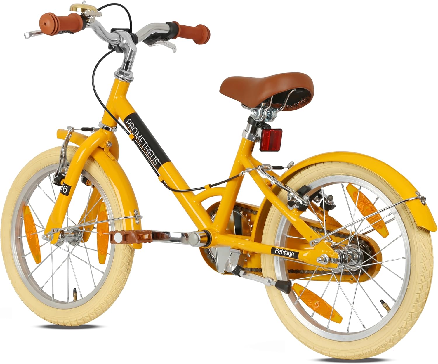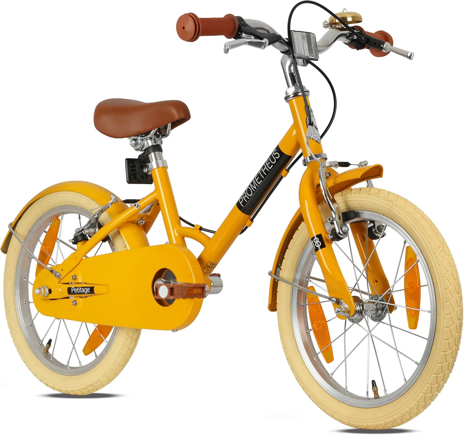 Jetzt entdecken: PROMETHEUS BICYCLES Retro Children’s Bicycle 18 Inch Boys from 6 Years – Children’s Bicycle 18 Inch Boy Girl Bicycle Children Petitage in Yellow