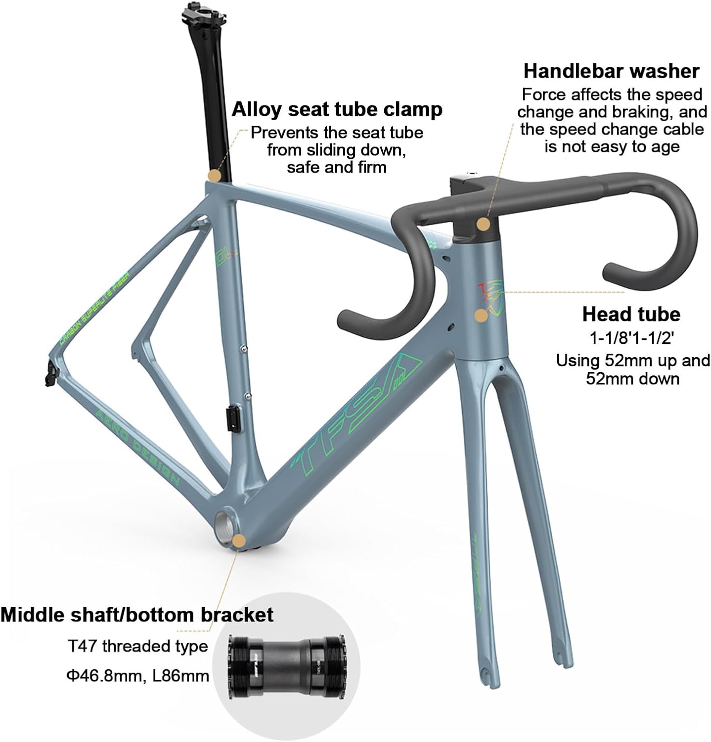 Top-Angebot: QAZXDRFG Carbon Fiber Gravel Bike Frame Set, Frame with Coaster Brake, Carbon Fiber Track Bike Frame, Carbon Fiber Bicycle Frame Brake, Quick Release Frame (Green, 56cm)
