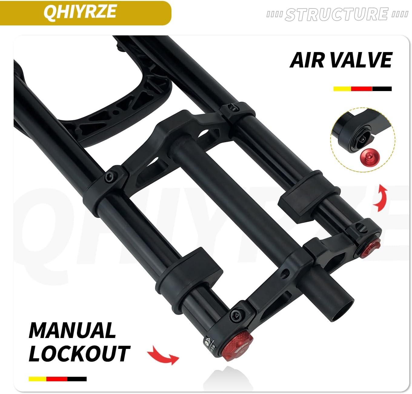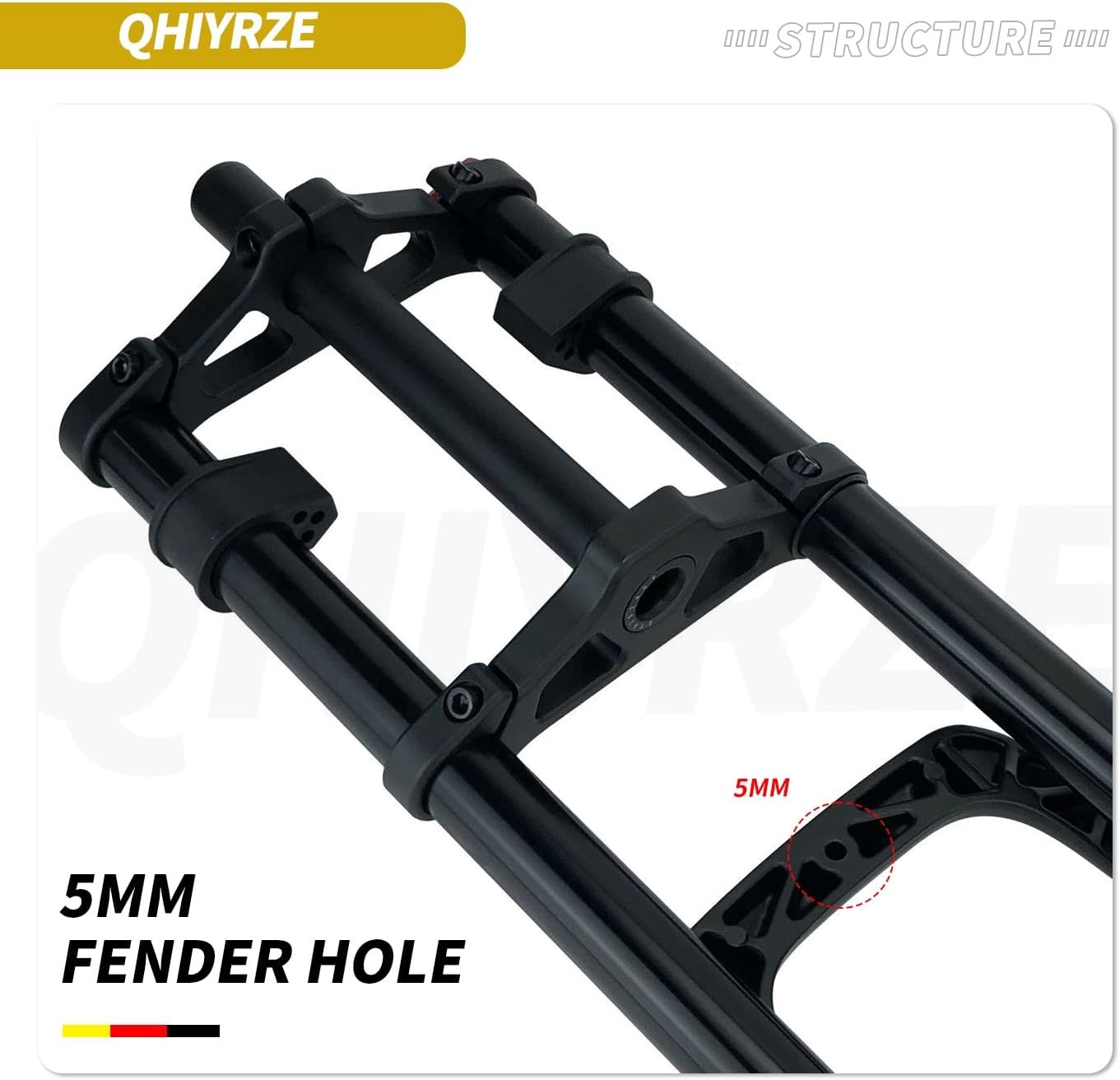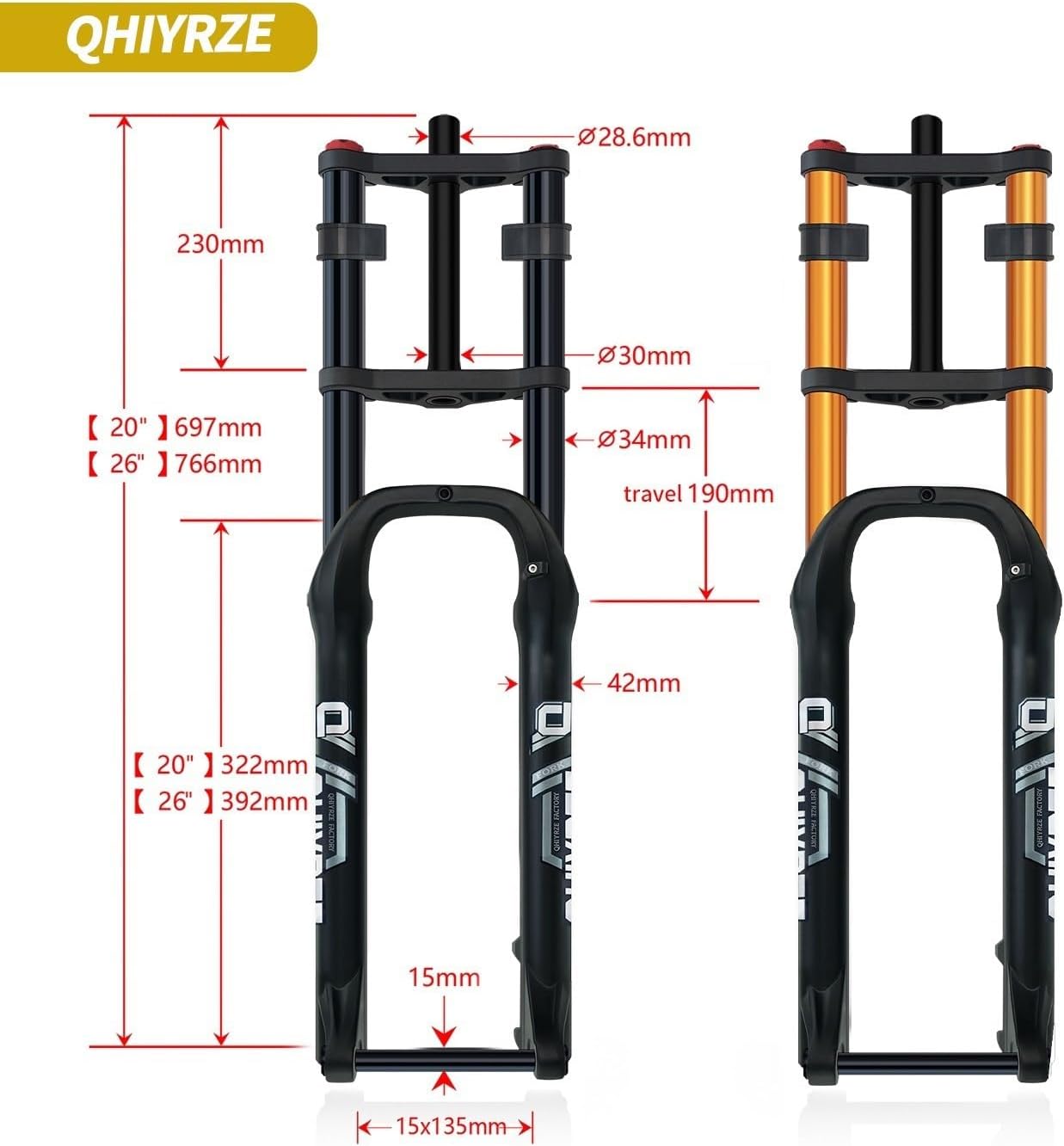 Top-Angebot: QHIYRZE 20/26 Inch Fat Bike Suspension Fork Double Crown Bicycle Air Fork 4.0 E-Bike Front Wheel Fork 190 mm Suspension Travel Pull Level Adjustment, 135 mm Hub Spacing, 15 mm Thru Axle, Disc Brake
