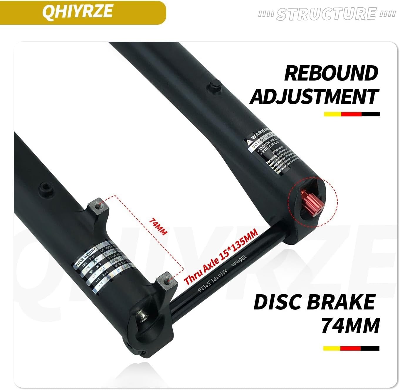 Mit dem QHIYRZE 20/26 Inch Fat Bike Suspension Fork Double Crown Bicycle Air Fork 4.0 E-Bike Front Wheel Fork 190 mm Suspension Travel Pull Level Adjustment, 135 mm Hub Spacing, 15 mm Thru Axle, Disc Brake bekommst du Qualität, Komfort und Stil – perfekt für deine nächste Tour.