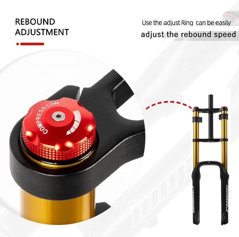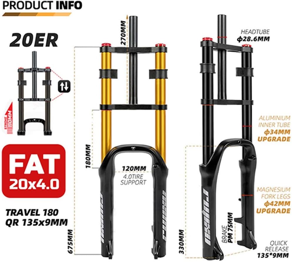 Top-Angebot: QHIYRZE 20 Inch 4.0 Inch Tyre Bicycle Suspension Fork Air Fat Bike Fork Suspension Travel 110 mm Pull Level Adjustable Double Shoulder Straight Front Fork for MTB Snow Beach (Colour: Gold)
