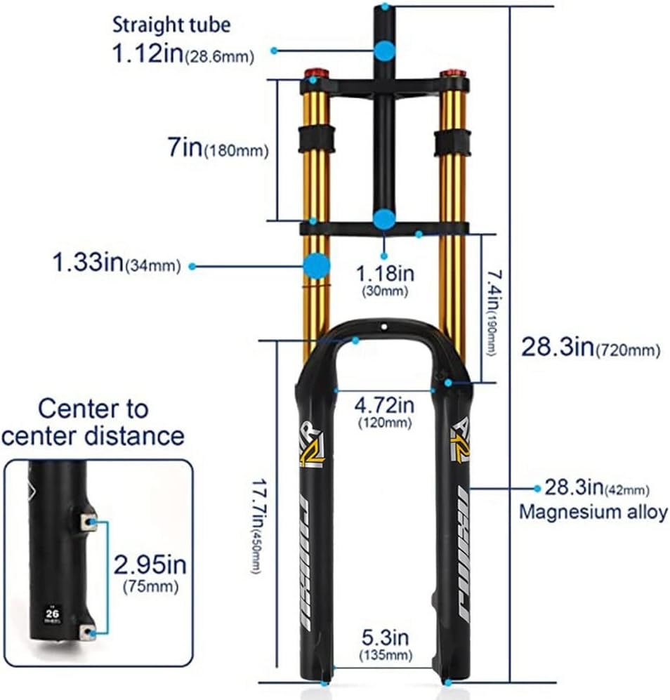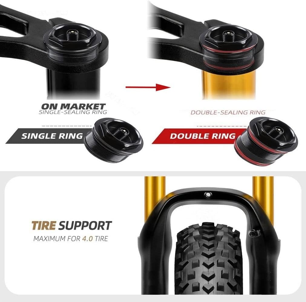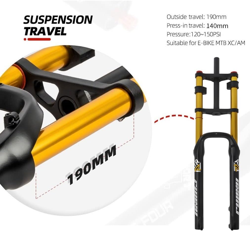 Top-Angebot: QHIYRZE 26 Inch Fatbike Suspension Fork Suspension Travel 140 mm 4.0 Inch Tyres MTB Air Fork 1-1/8 Inch Double Shoulder Fork Damping Adjustment Disc Brake QR Bicycle Suspension Fork for Snow Beach E-Bike