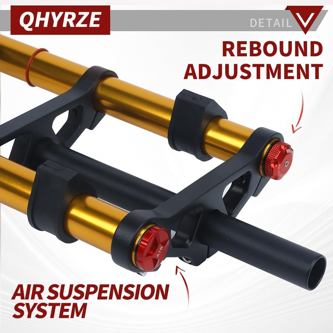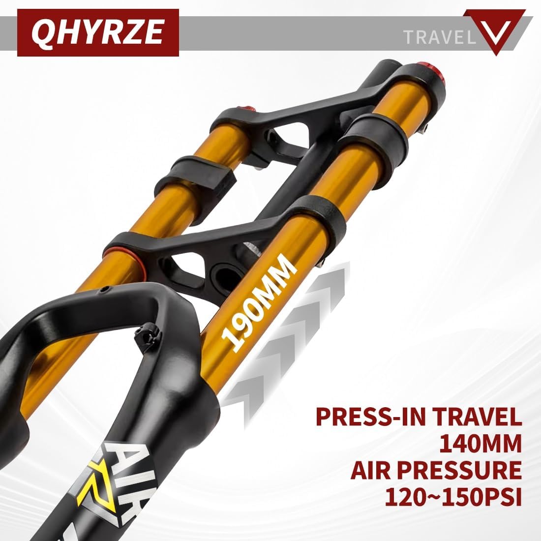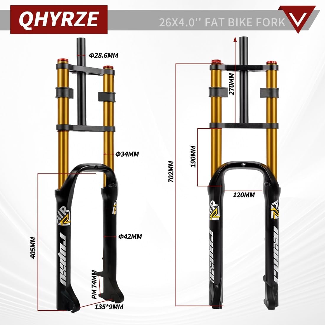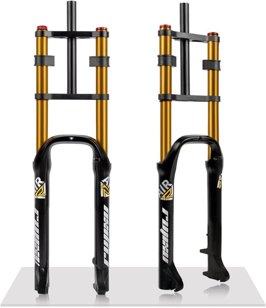 Top-Angebot: QHYRZE 26 Inch 4.0 Fat Bike Fork Bicycle Suspension Fork 140 mm Suspension Travel Rebound Adjustment Mountain Bike Ebike Air Fork Double Bridge Fork QR 9 x 135 mm Disc Brake Front Wheel Fork (Gold)