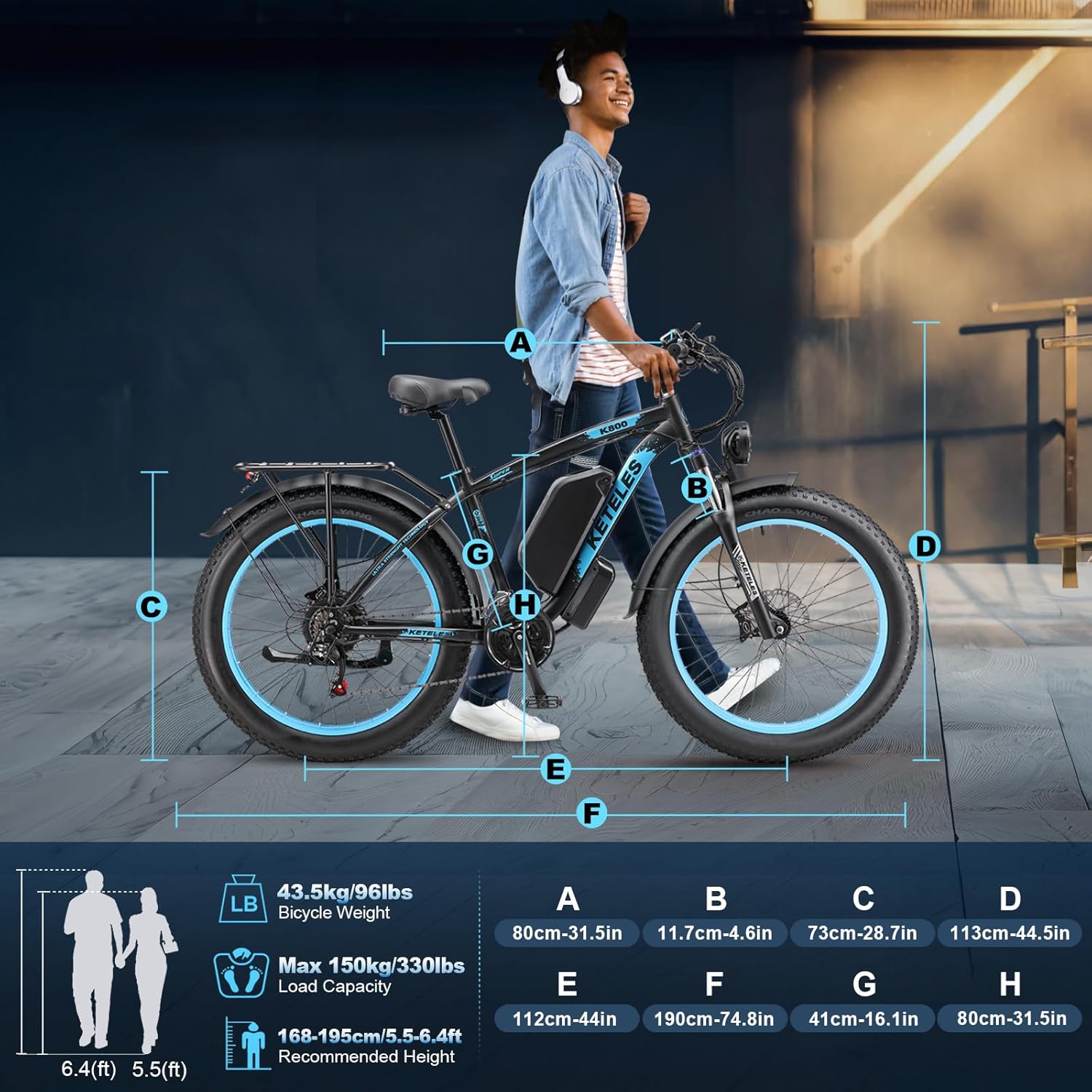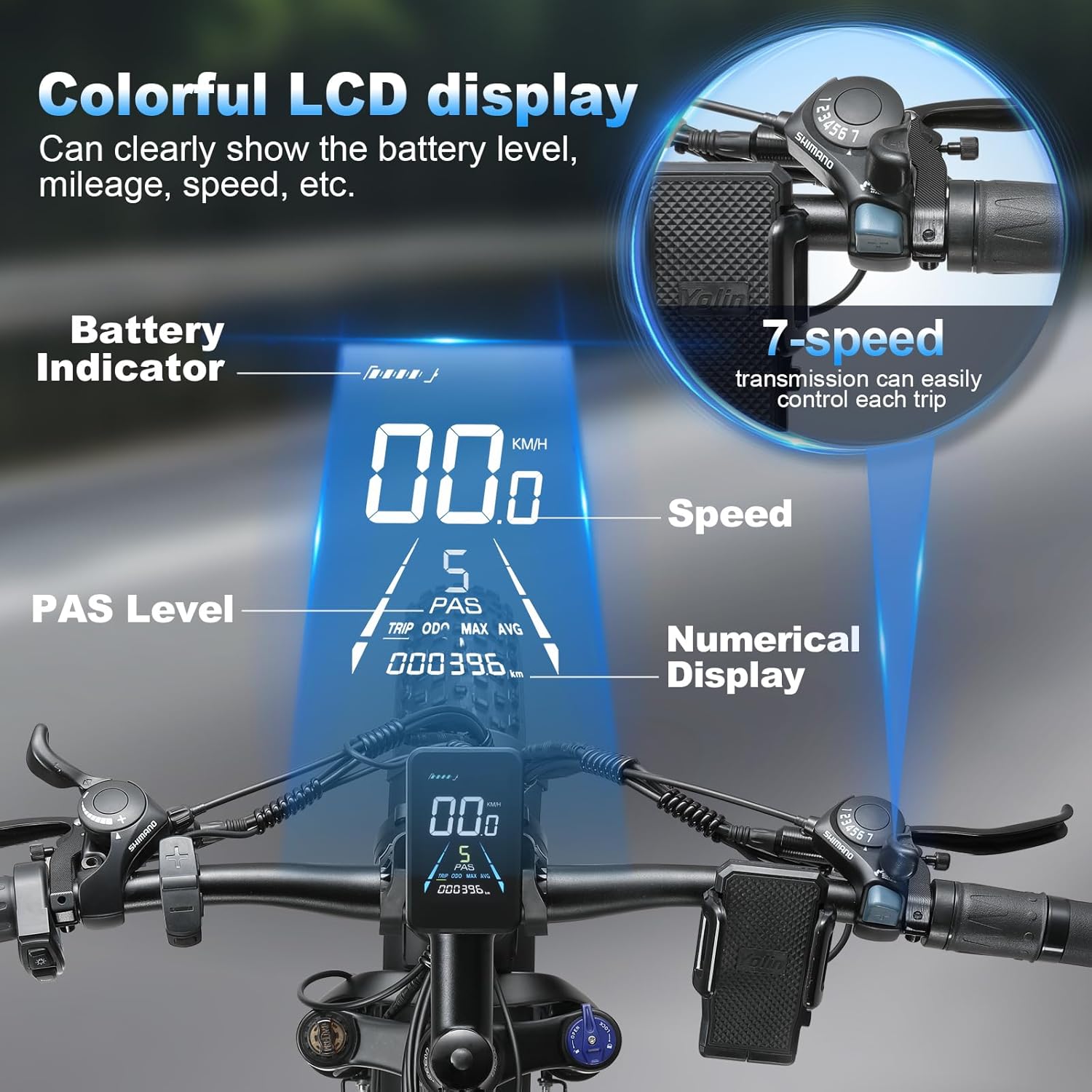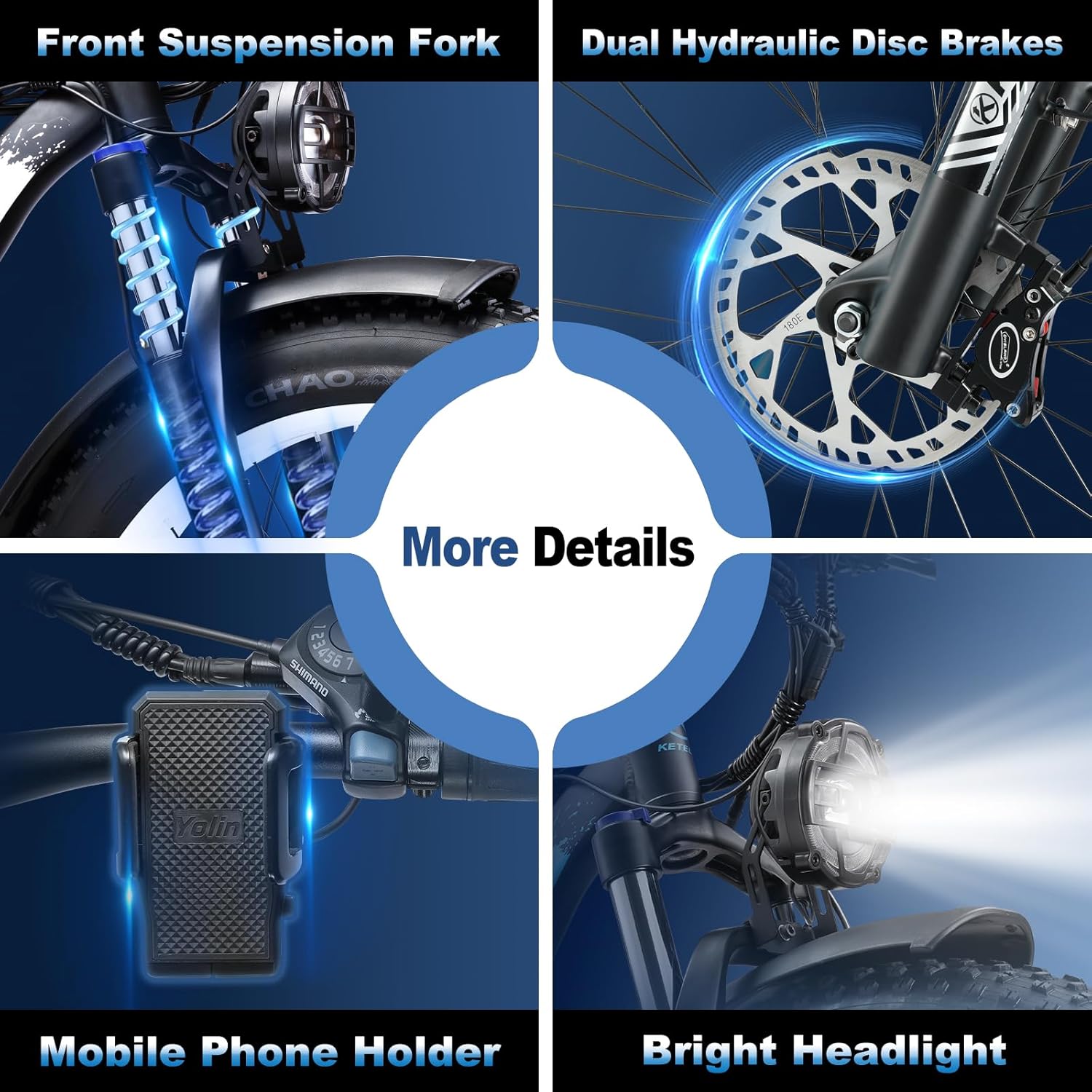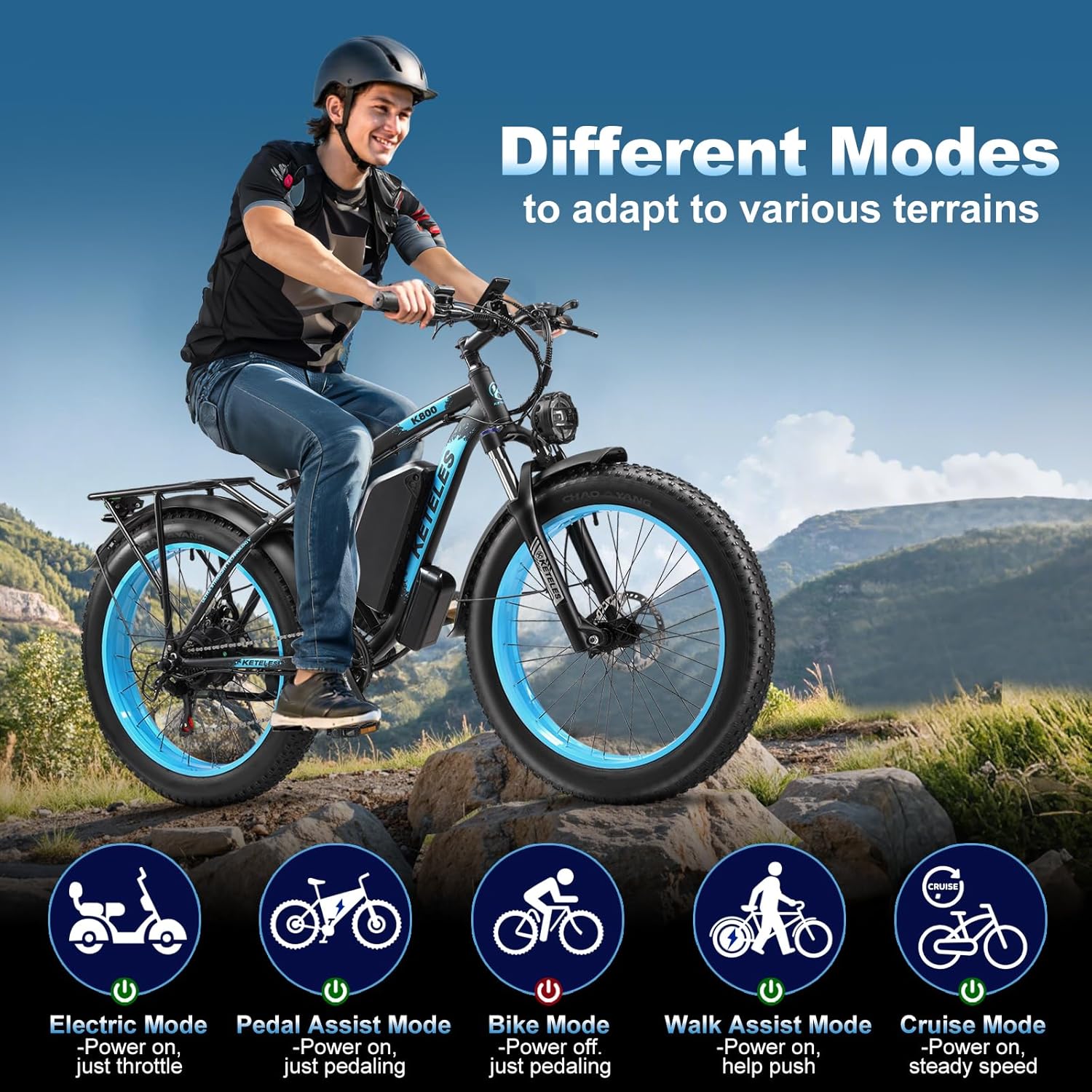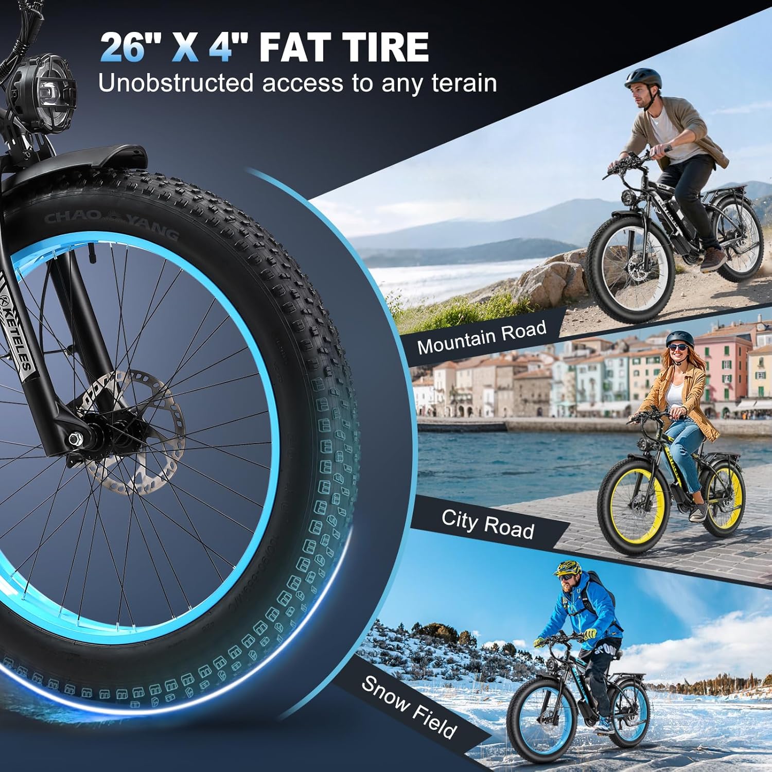 Jetzt entdecken: QIKAITU E Bike, 23 A/1104 Wh Battery Electric Bicycle Ebike with Phone Holder, E Fat Bike with 26 Inch x 4.0 Tyres, 250 W E-Bike 90 KM Range 21 Speed Hydraulic Disc Brakes LCD Display