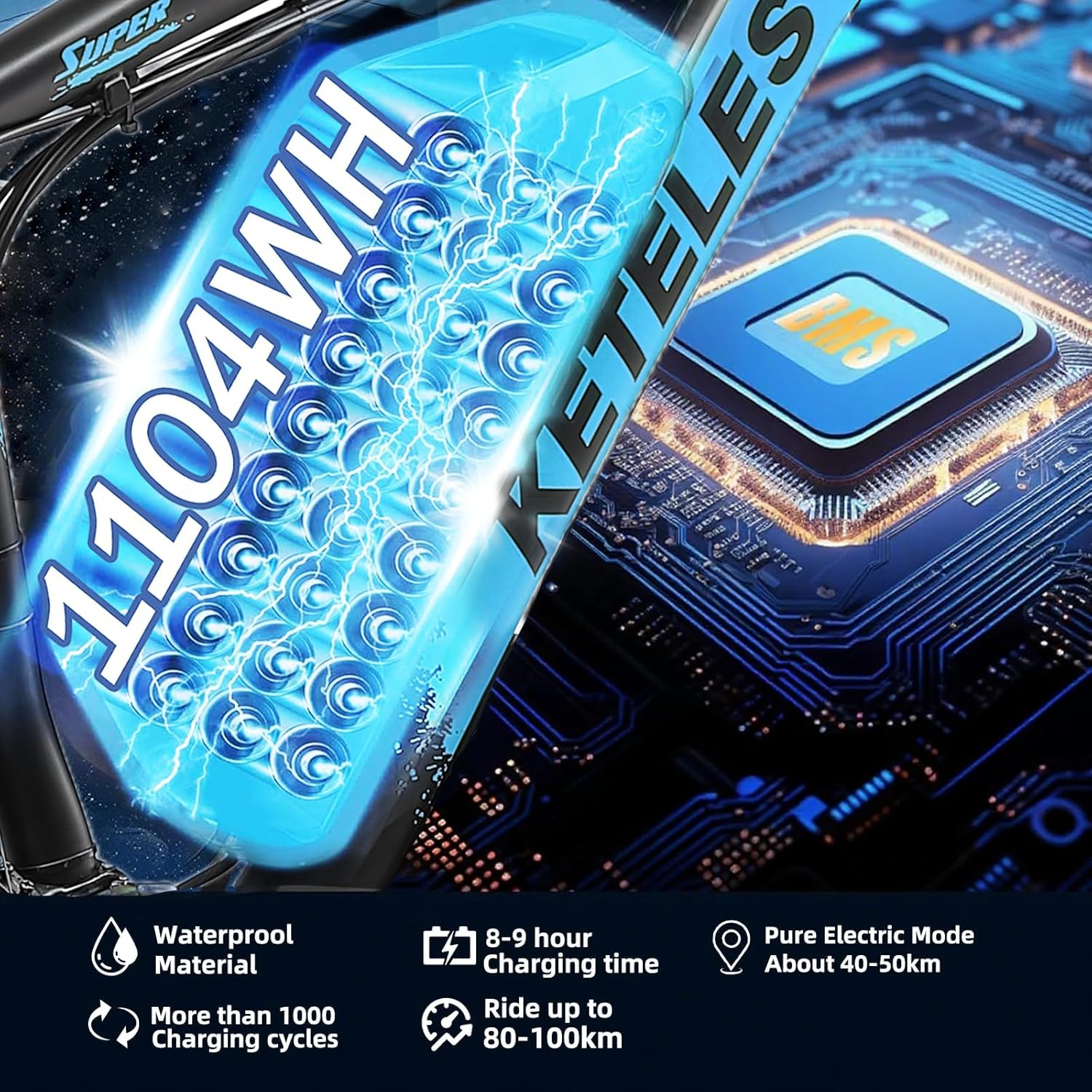 Top-Angebot: QIKAITU E Bike, 23 A/1104 Wh Battery Electric Bicycle Ebike with Phone Holder, E Fat Bike with 26 Inch x 4.0 Tyres, 250 W E-Bike 90 KM Range 21 Speed Hydraulic Disc Brakes LCD Display