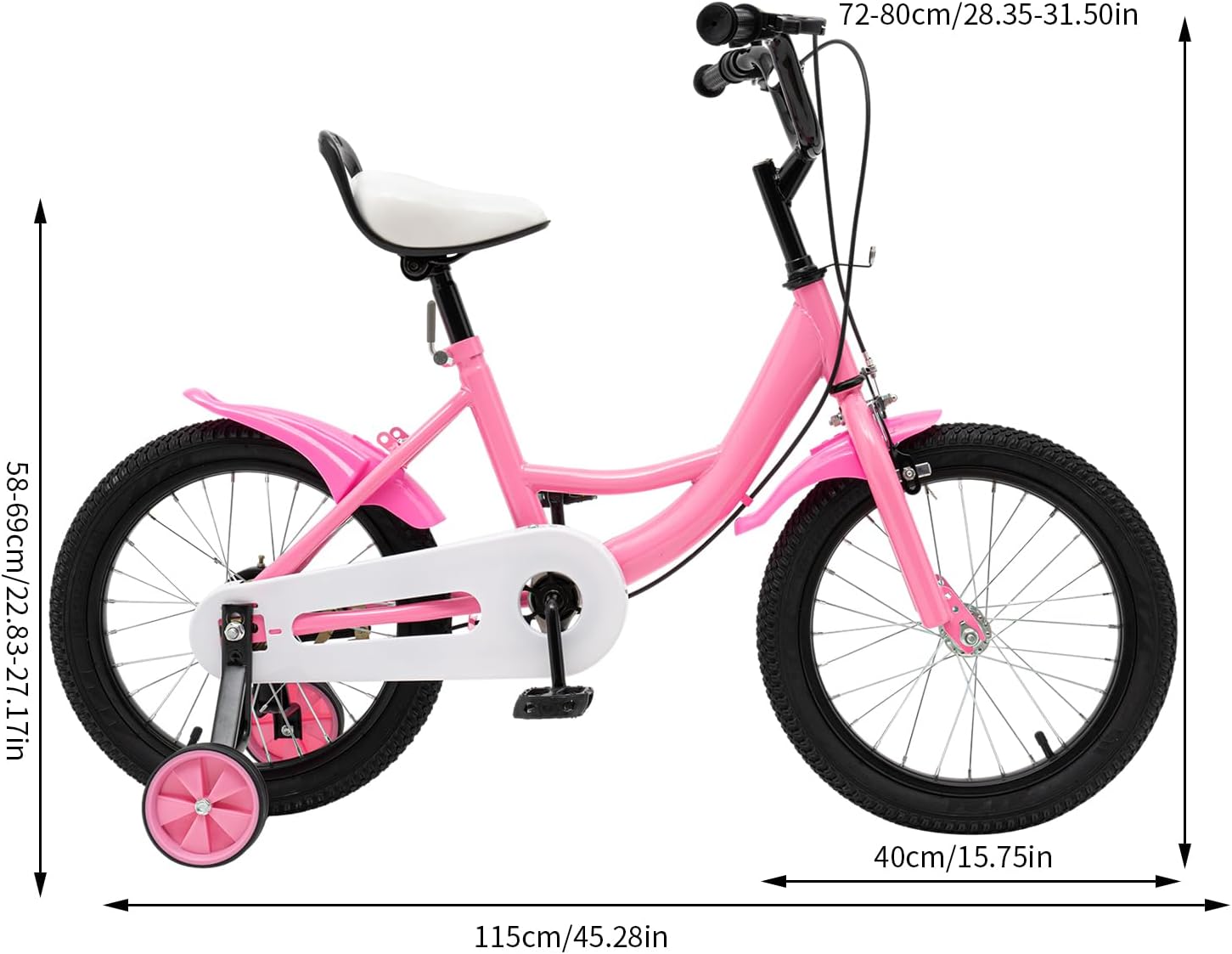 Top-Angebot: Qussse Children’s Bicycle 16 Inch Boys Girls Carbon Steel Alloy Bicycle from 4-8 Years Children’s Bicycles Height Adjustable Children’s Bicycles with Stabilisers Auxiliary Wheel (Pink)