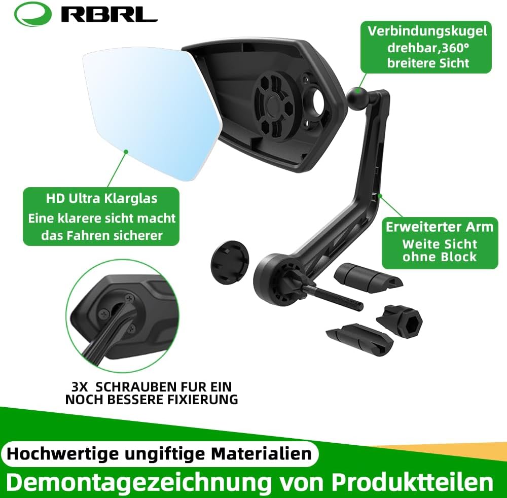 Das RBRL Bicycle Mirror, Extra Large Bar End Bicycle Mirror, Impact-Resistant Real Glass Mirror Surface, Rear View Mirror, Bicycle Mirror for E-Bike, Universal Bicycle Rear View Mirror (Left) ist ideal für Sportbegeisterte, die ein zuverlässiges Fahrrad suchen.