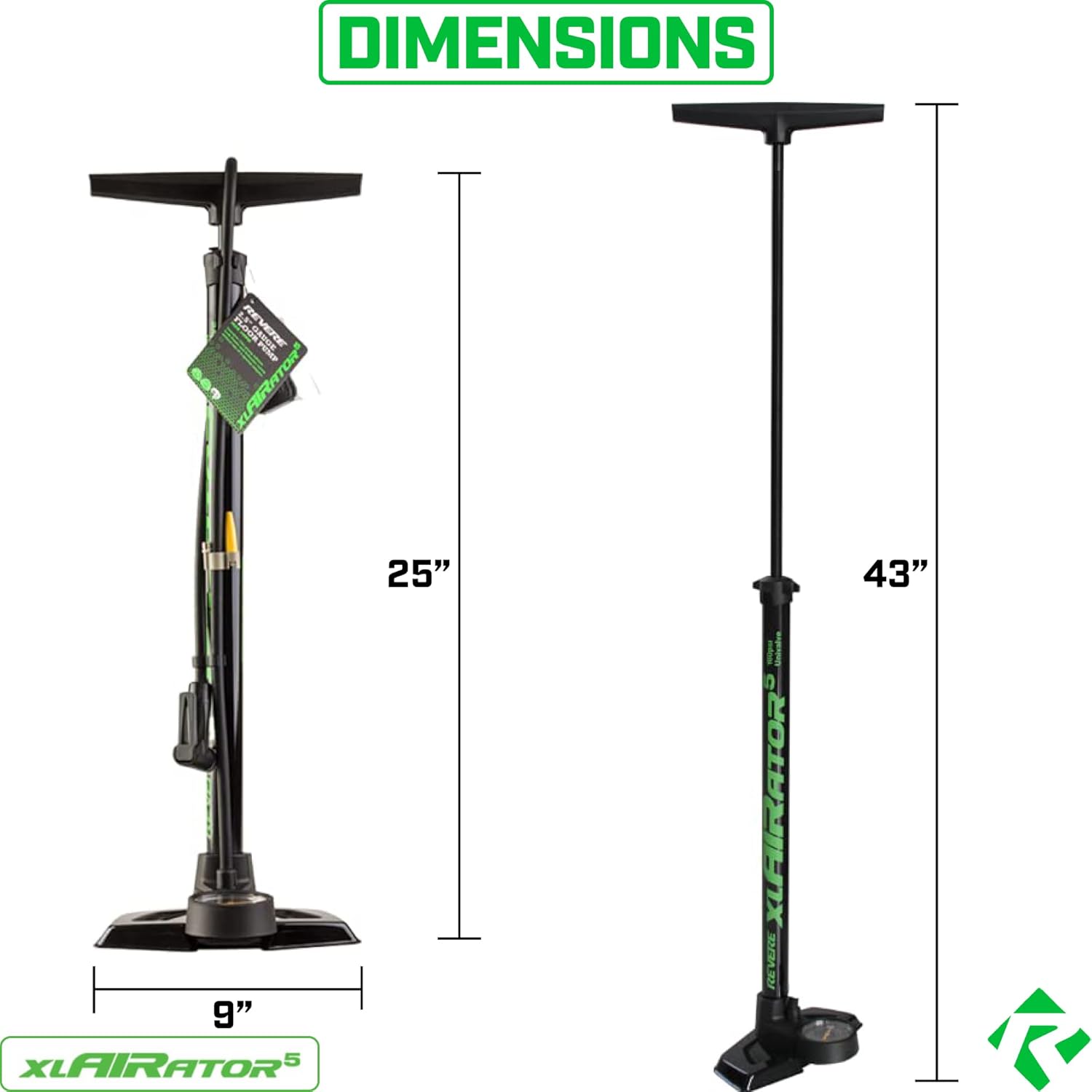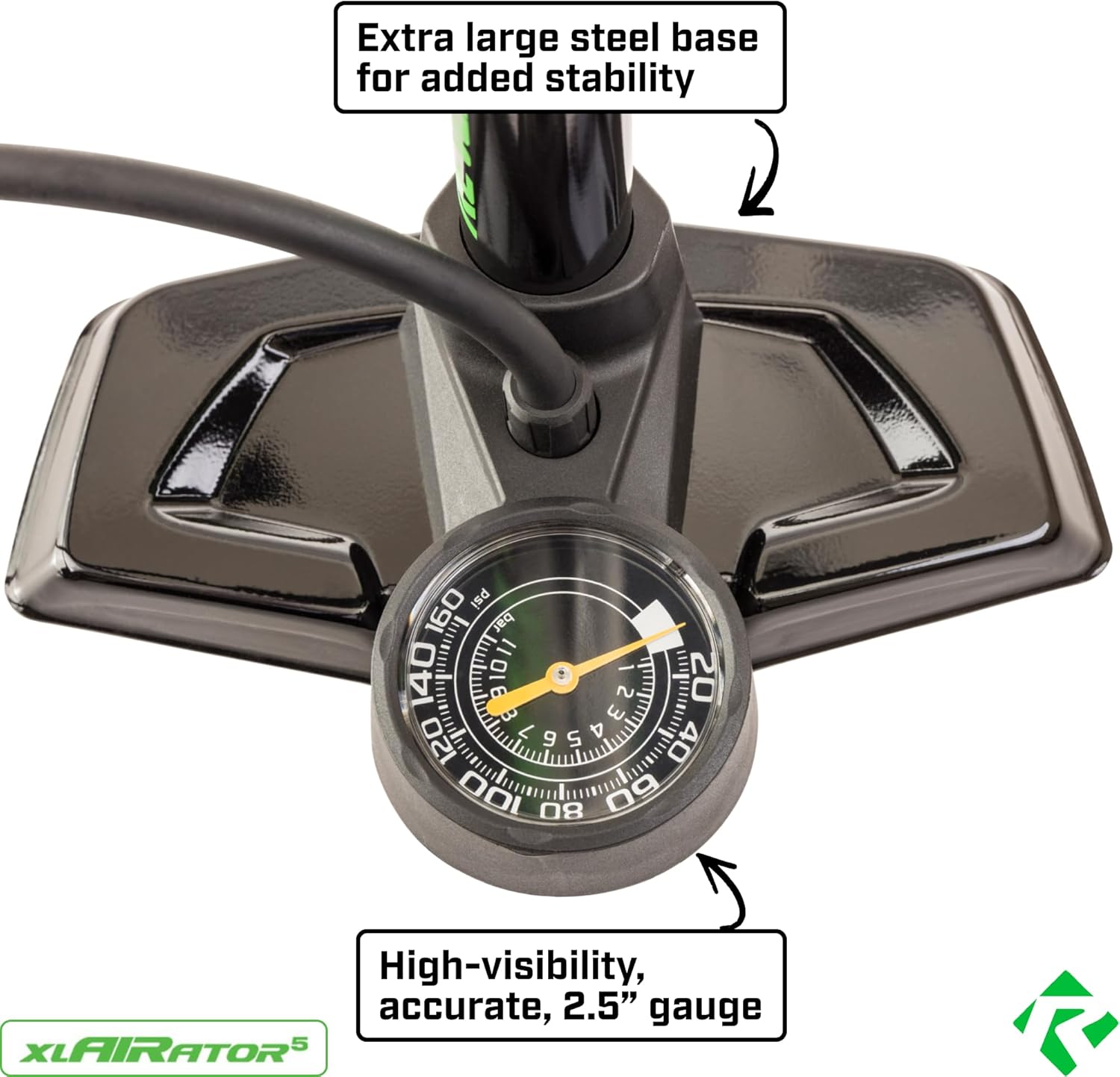 Top-Angebot: REVERE XLAIRATOR 5 Bike Floor Pump: 160 PSI Fits Presta and Schrader Valve, Versatile Inflation for Road Bikes, Gravel Bikes, Mountain Bikes, Kids Bikes and Sports Balls, Large