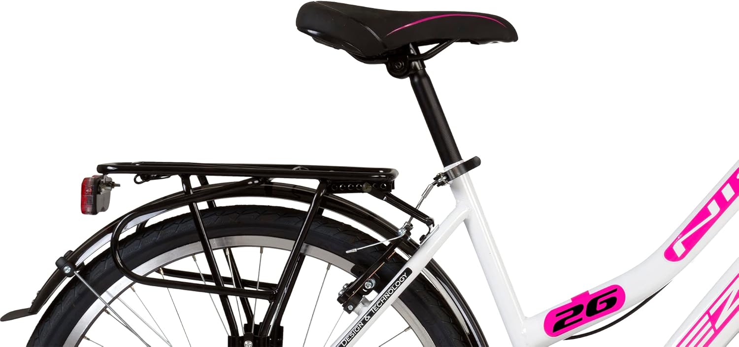 Das Rezzak 26 Inch Bicycle for Girls and Women – City Bike with 21 Speed Rotary Gear, RH Approx. 47 cm, White/Pink -050 ist ideal für Hobbyradler, die ein zuverlässiges Fahrrad suchen.