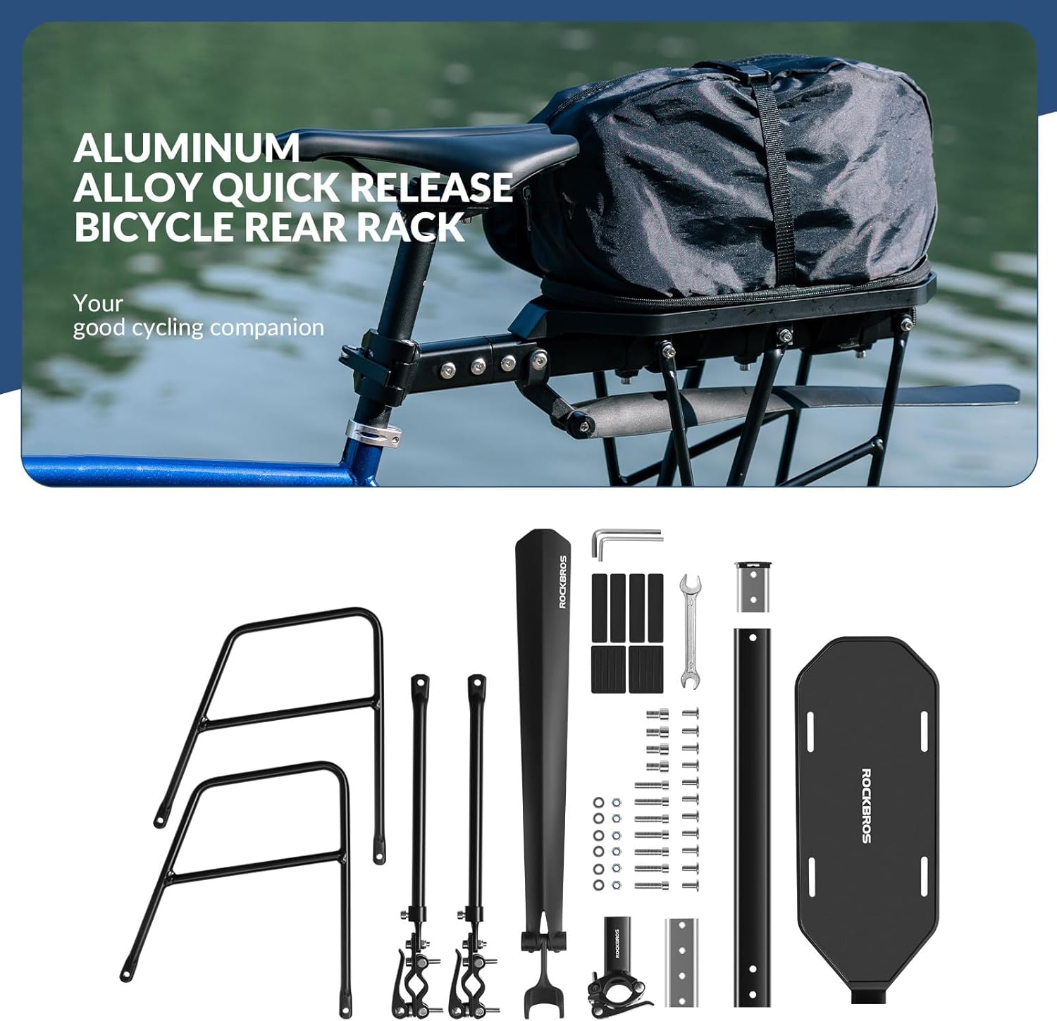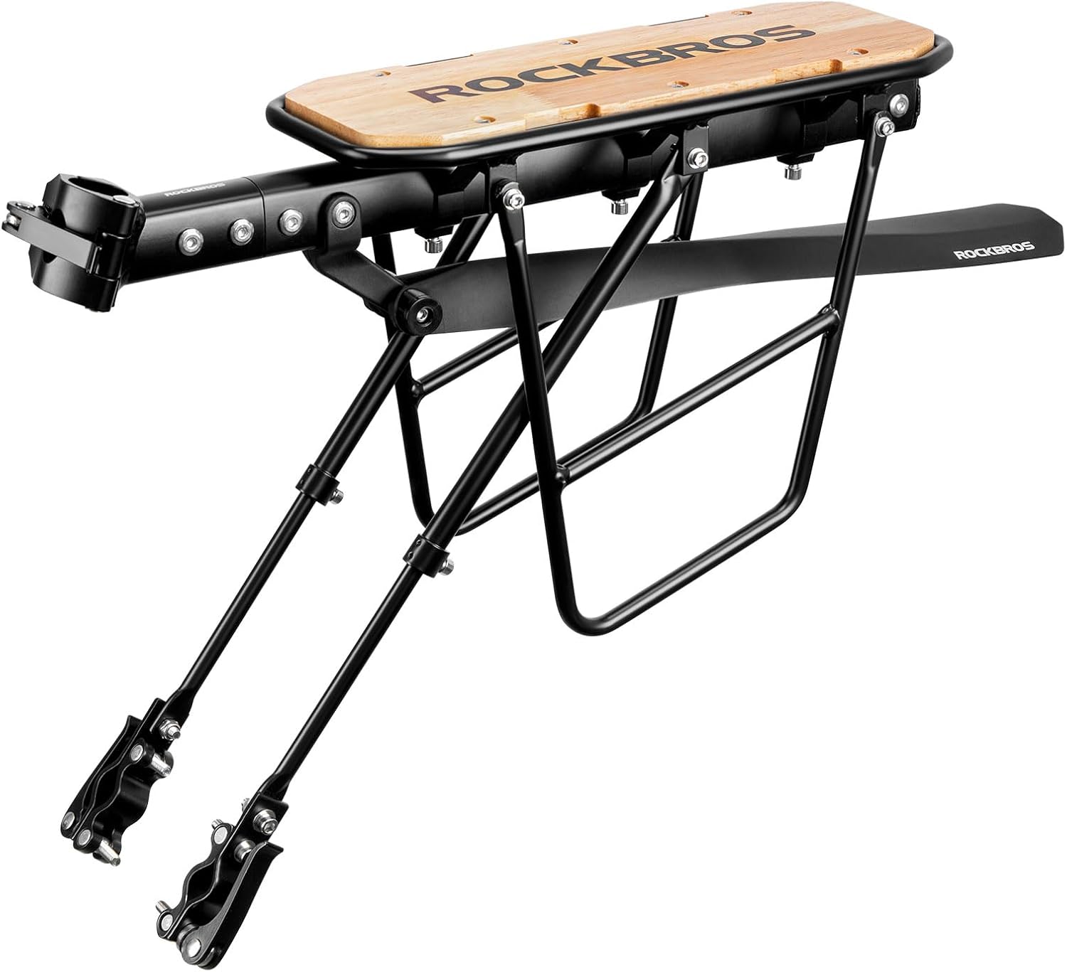 Jetzt entdecken: ROCKBROS Aluminium Bicycle Pannier Rack, Adjustable Quick Release with Mudguard, Robust Stable Bicycle Pannier Rack for 26-29 Inch Mountain Bike, Road Bike, Wood