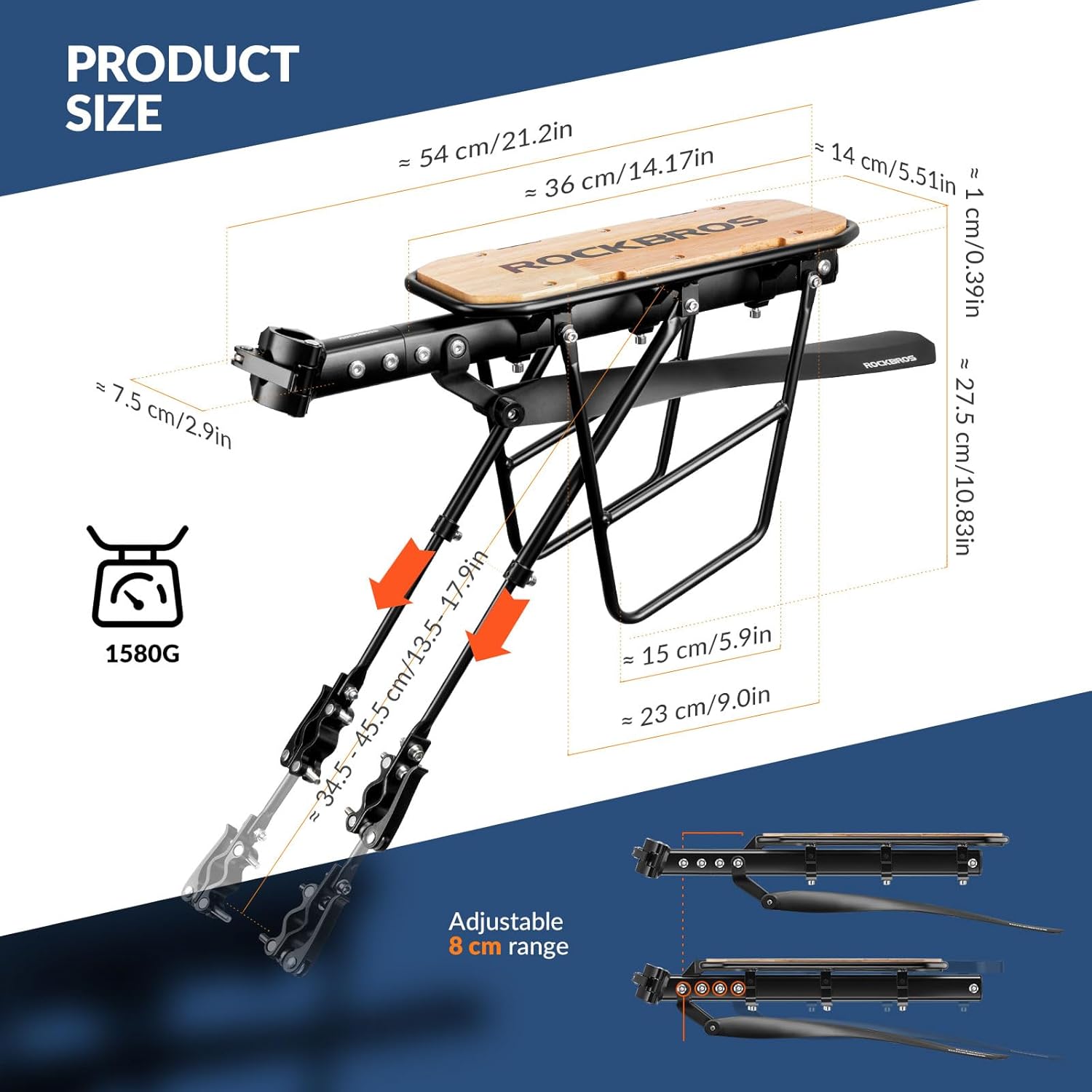 Top-Angebot: ROCKBROS Aluminium Bicycle Pannier Rack, Adjustable Quick Release with Mudguard, Robust Stable Bicycle Pannier Rack for 26-29 Inch Mountain Bike, Road Bike, Wood