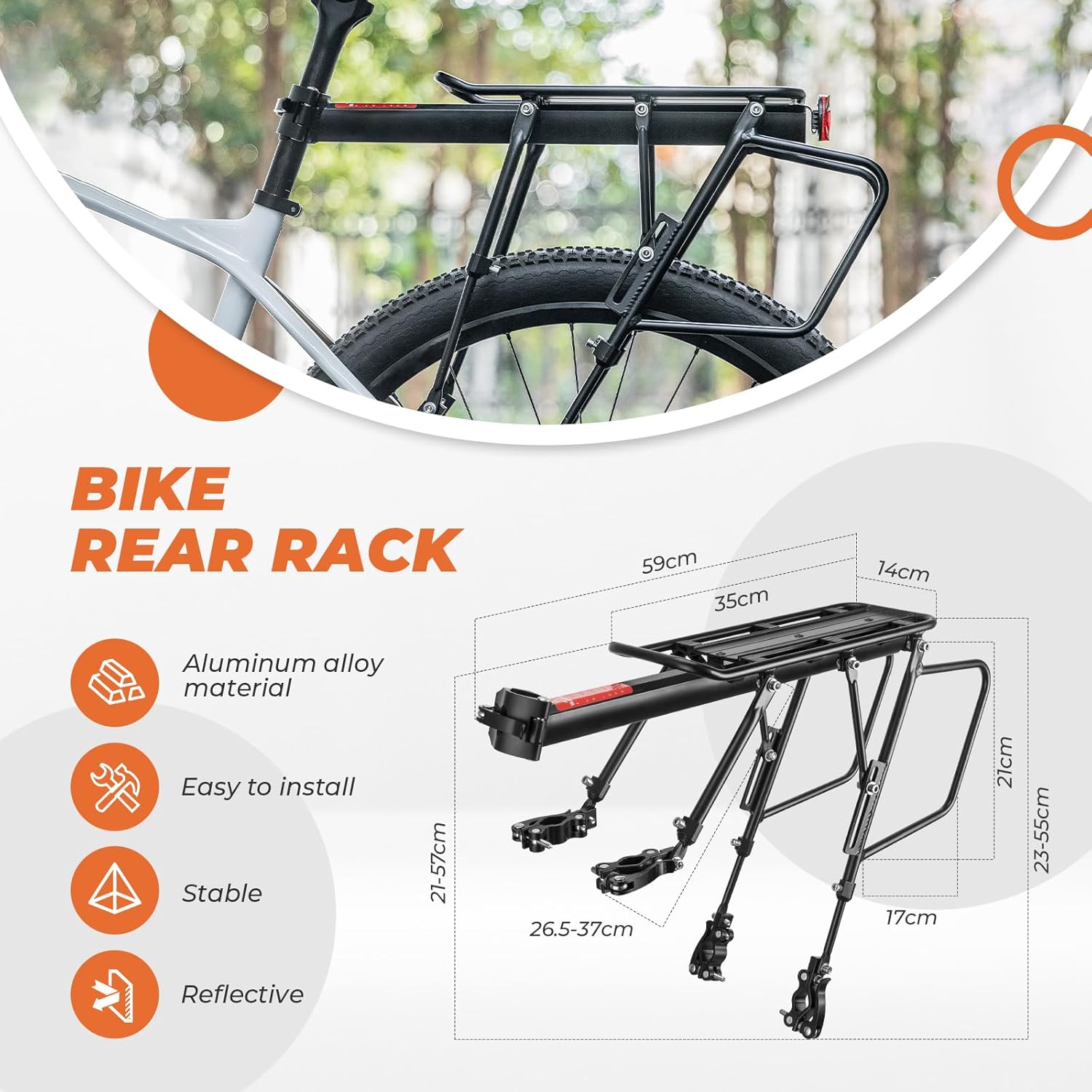 Top-Angebot: ROCKBROS Bicycle Pannier Rack Aluminium Alloy Adjustable for 26-29 Inch Rear Bicycle Seat Post Pannier Rack with Quick Release and Reflector for Universal Road Bikes Mountain Bikes