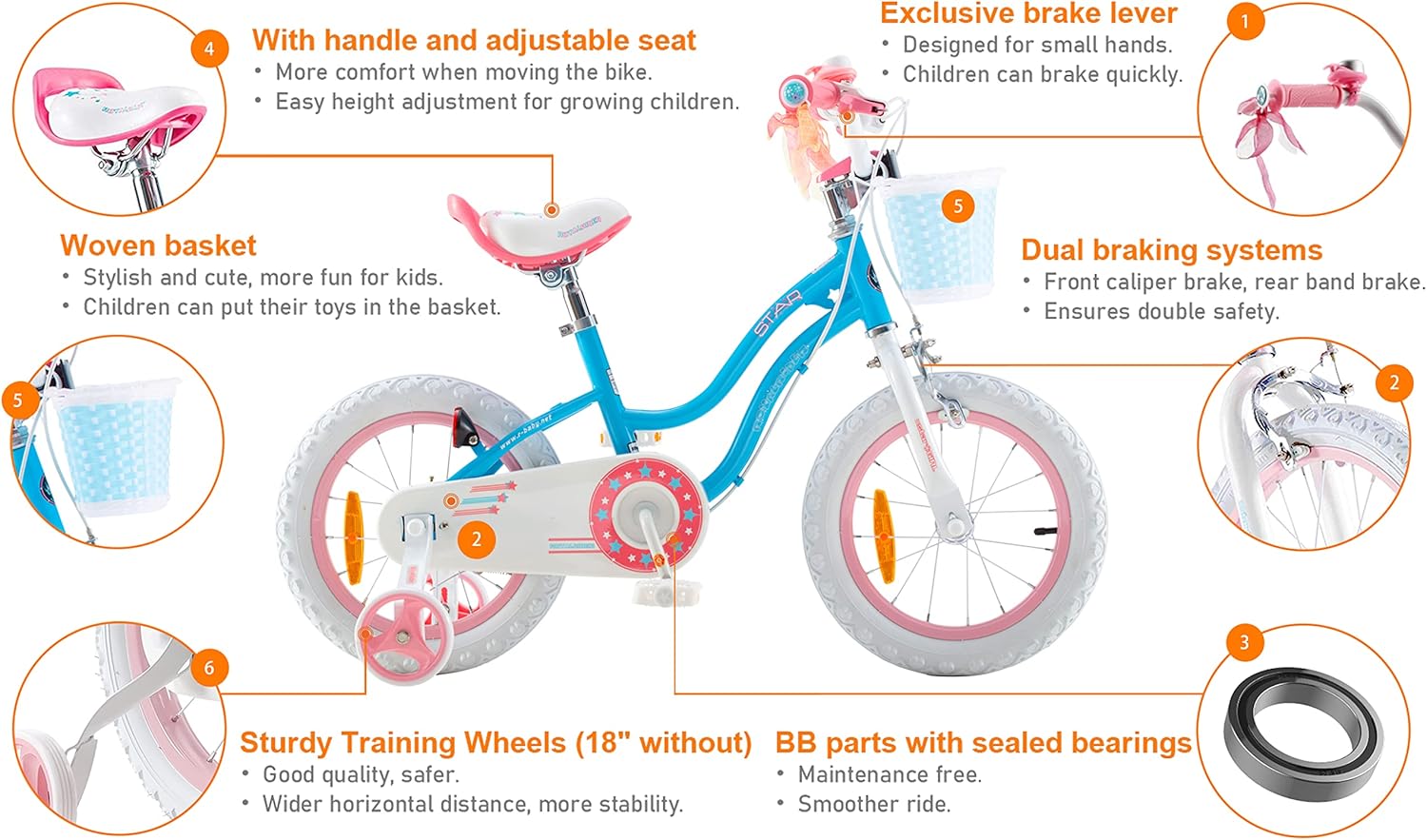 Das Royal Baby Stargirl Children’s Bicycle Girls‘ Bicycle Stabilisers 12 14 16 18 Inch from 3-10 Years Pink Blue Purple Children’s Bicycle ist ideal für Hobbyradler, die ein zuverlässiges Fahrrad suchen.