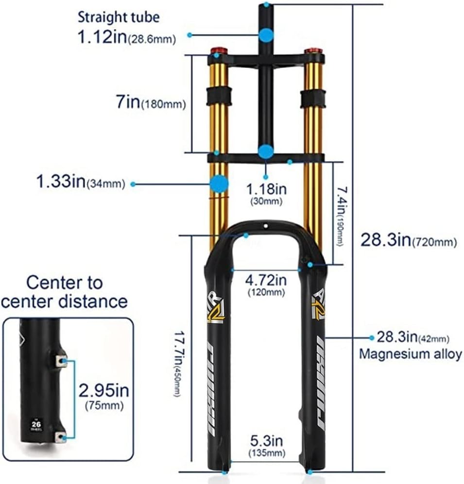 Top-Angebot: RUJIXU 26 Inch Grease Fork Suspension Travel 170 mm 4.0 Inch Tyres MTB Bicycle Air Suspension Fork 1-1/8 Inch Double Shoulder Rebound Setting Disc Brake QR Bicycle Front Wheel Fork for Snow Beach