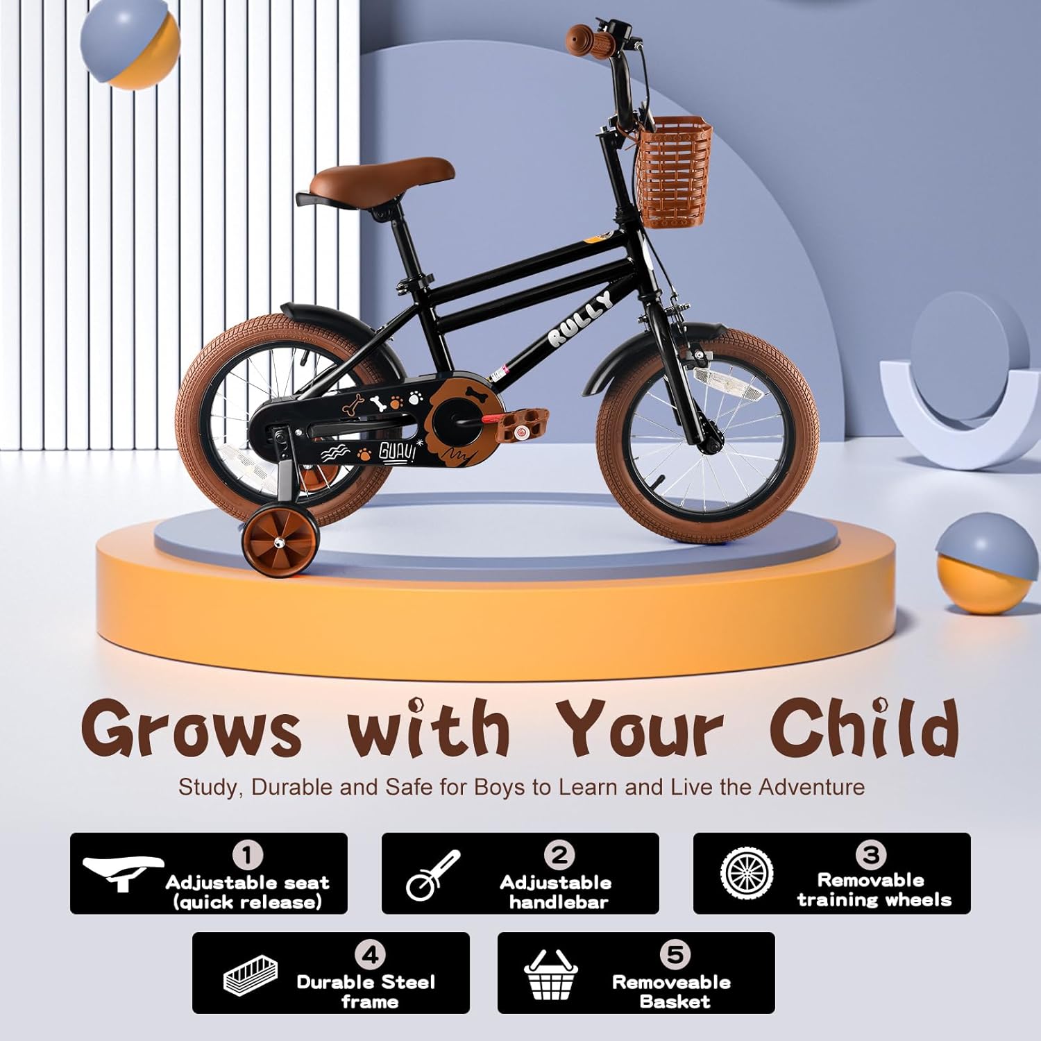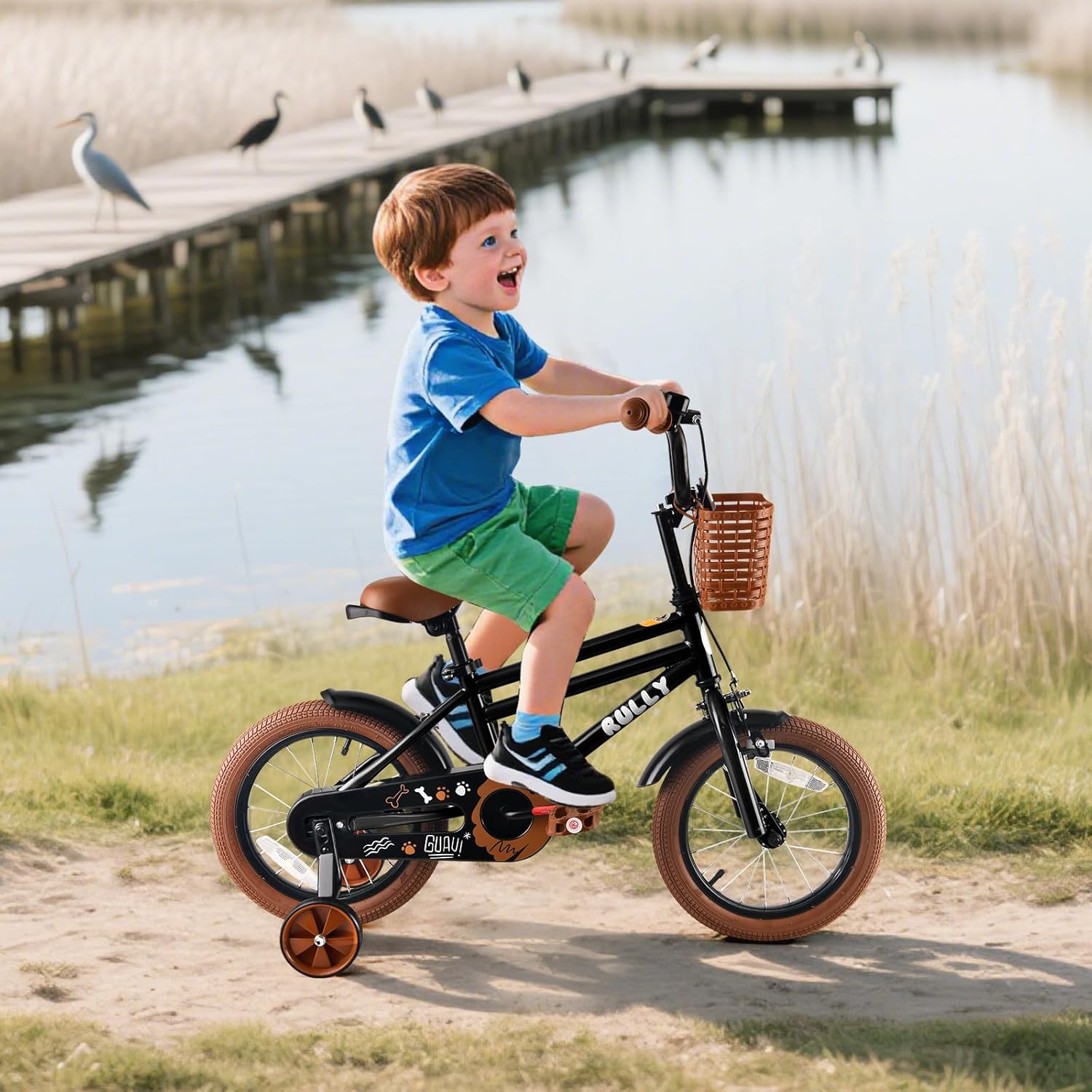 Mit dem RULLY 12-16 inch Boys Bicycle for Children from 2-6 Years – Bicycle with Stabilisers, Coaster Brake & Handbrake, Front Basket – Blue, Black, Green bekommst du Qualität, Komfort und Stil – perfekt für deine nächste Tour.