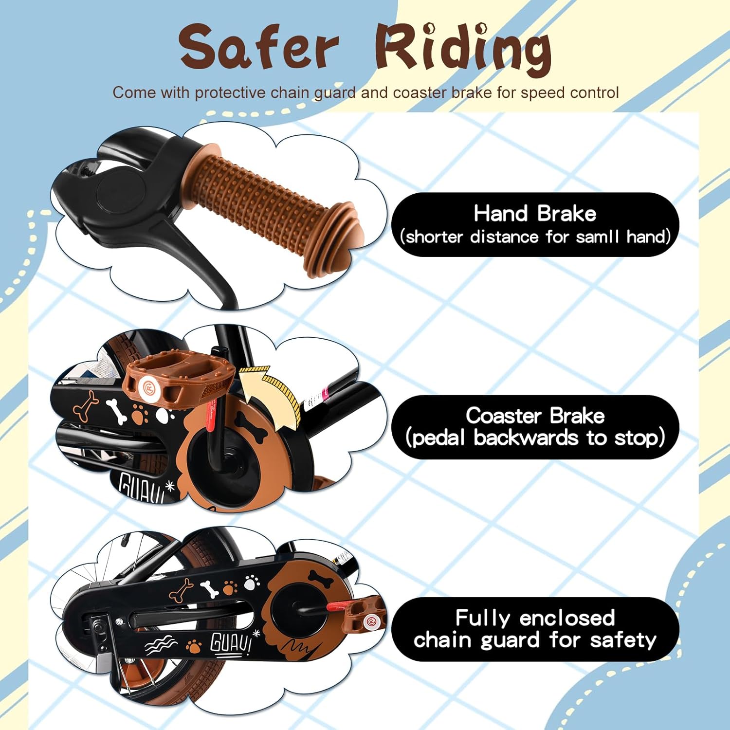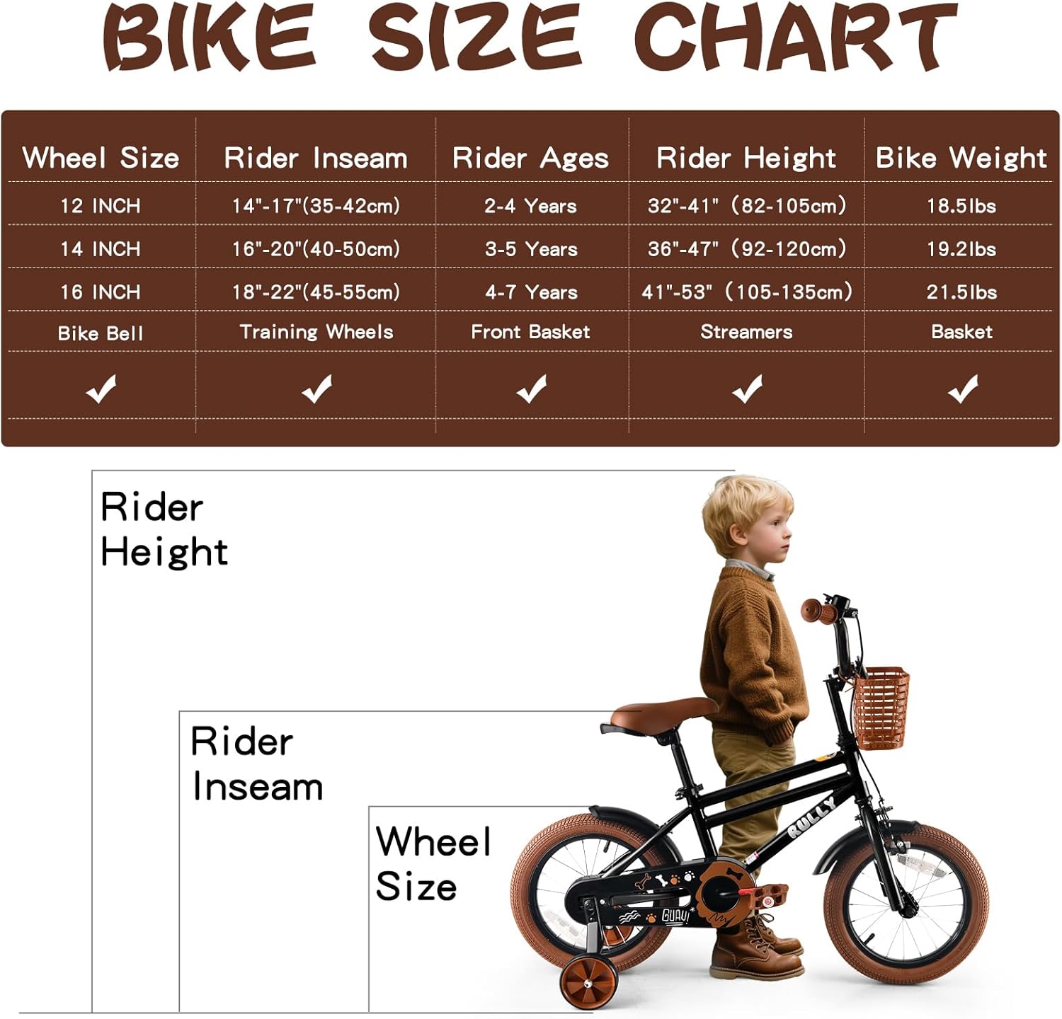 Top-Angebot: RULLY 12-16 inch Boys Bicycle for Children from 2-6 Years – Bicycle with Stabilisers, Coaster Brake & Handbrake, Front Basket – Blue, Black, Green