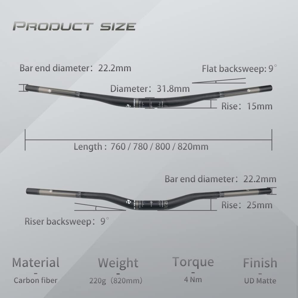 Mit dem RXL SL 31.8 Bicycle Carbon Riser Handlebar Mountain Bike UD Matte Carbon Downhill Handlebar 780 mm bekommst du Qualität, Komfort und Stil – perfekt für deine nächste Tour.