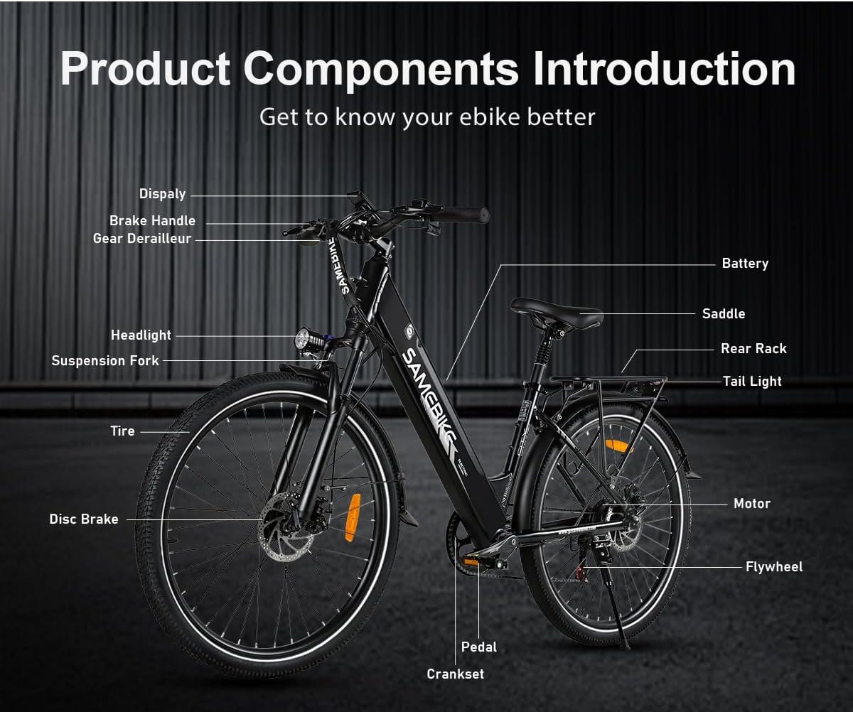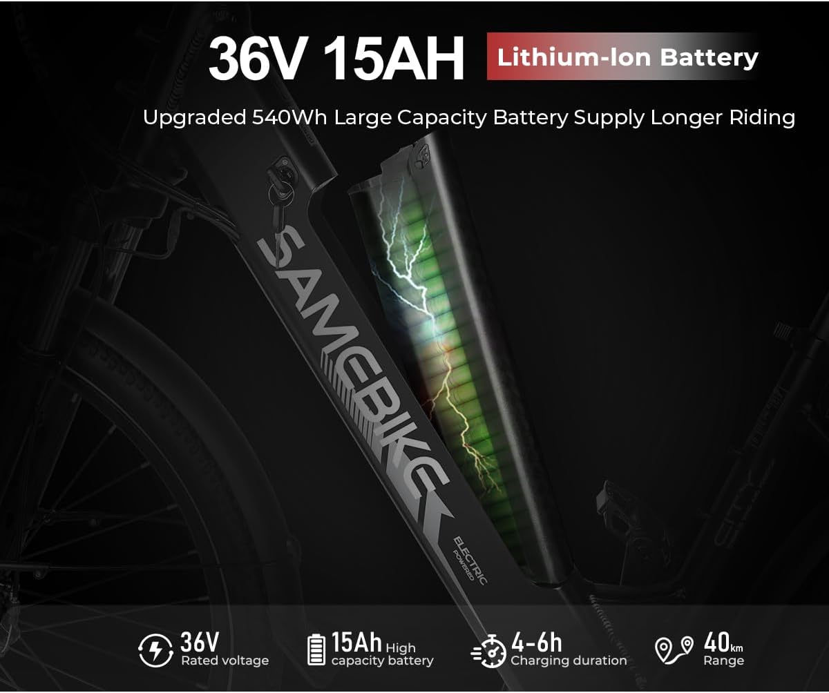 Mit dem SAMEBIKE 26 Inch Electric Bicycle for Adults, RS-A01Pro-T with Front Basket, 36 V 15 Ah Removable Battery, 25 km/h, 250 W Motor E-Bike for City Traffic bekommst du Qualität, Komfort und Stil – perfekt für deine nächste Tour.