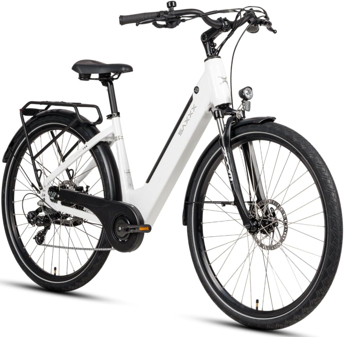 Top-Angebot: SAXXX E Bike Women’s 28 Inch Low Entry with 36 V 13 Ah Battery, Electric Bicycle Adult with Disc Brake, 7 Speed Derailleur Gear, Pedelec with Suspension Fork, Pannier Rack for Women/Men/Men
