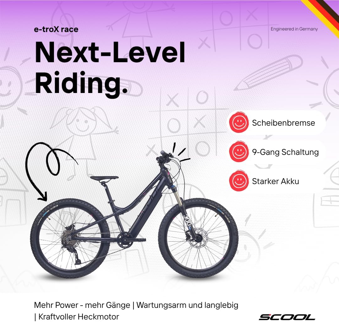 Top-Angebot: S’COOL e-troX Race 24 & 26 Inch 9-Speed Alivio Children’s Bicycle Youth Bicycle E-Bike Children’s E-Bike Children’s E-Bike Electric Bicycle 9 Speed