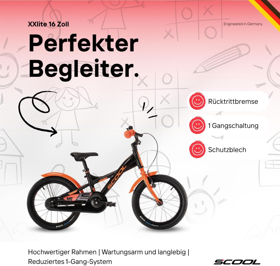 Top-Angebot: S’COOL S’COOL XXlite Children’s Bicycle, 16 Inch Bicycle for Children and Teenagers, Bicycle for Boys with Sporty Sitting Position, Children’s Bicycle with High-Quality Components