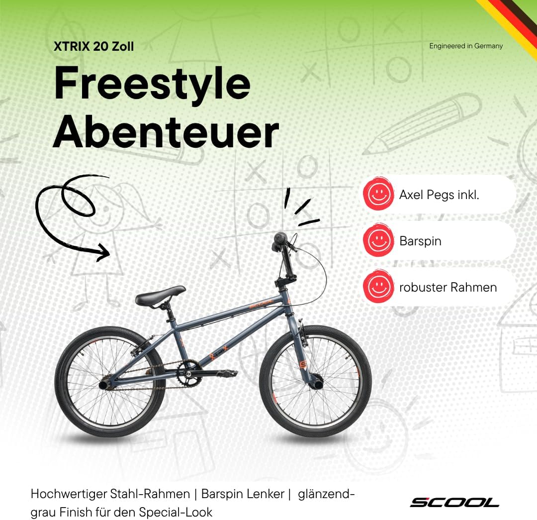 Mit dem S’COOL XtriX BMX 20 Zoll – 1 Gang Kinder BMX ab 6 Jahre BZW. 122 cm – 1 Gang – für Tricks & Stunts, mit Axle Pegs & V-Brakes bekommst du Qualität, Komfort und Stil – perfekt für deine nächste Tour.