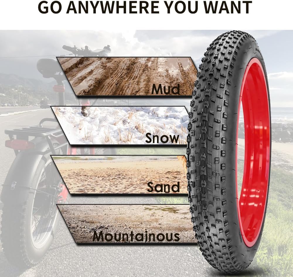 Top-Angebot: SIMEIQI 26 x 4 Inch Electric Bike Fatbike Tyre Puncture Protection Electric Bicycle Tricycle Tire Foldable Replacement Tyre for Mountain Bikes Snow All Terries E Bike City Road Road Bike