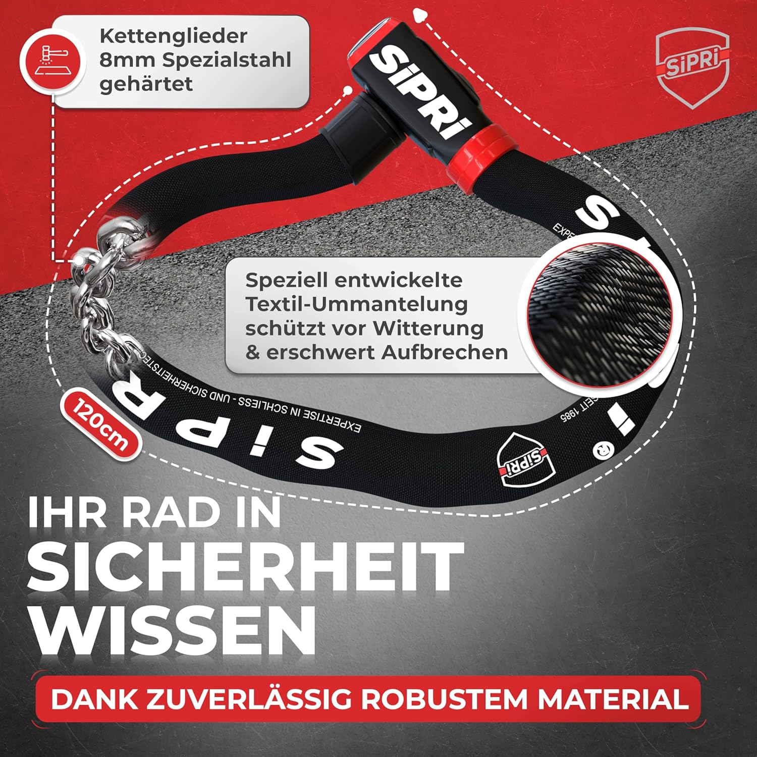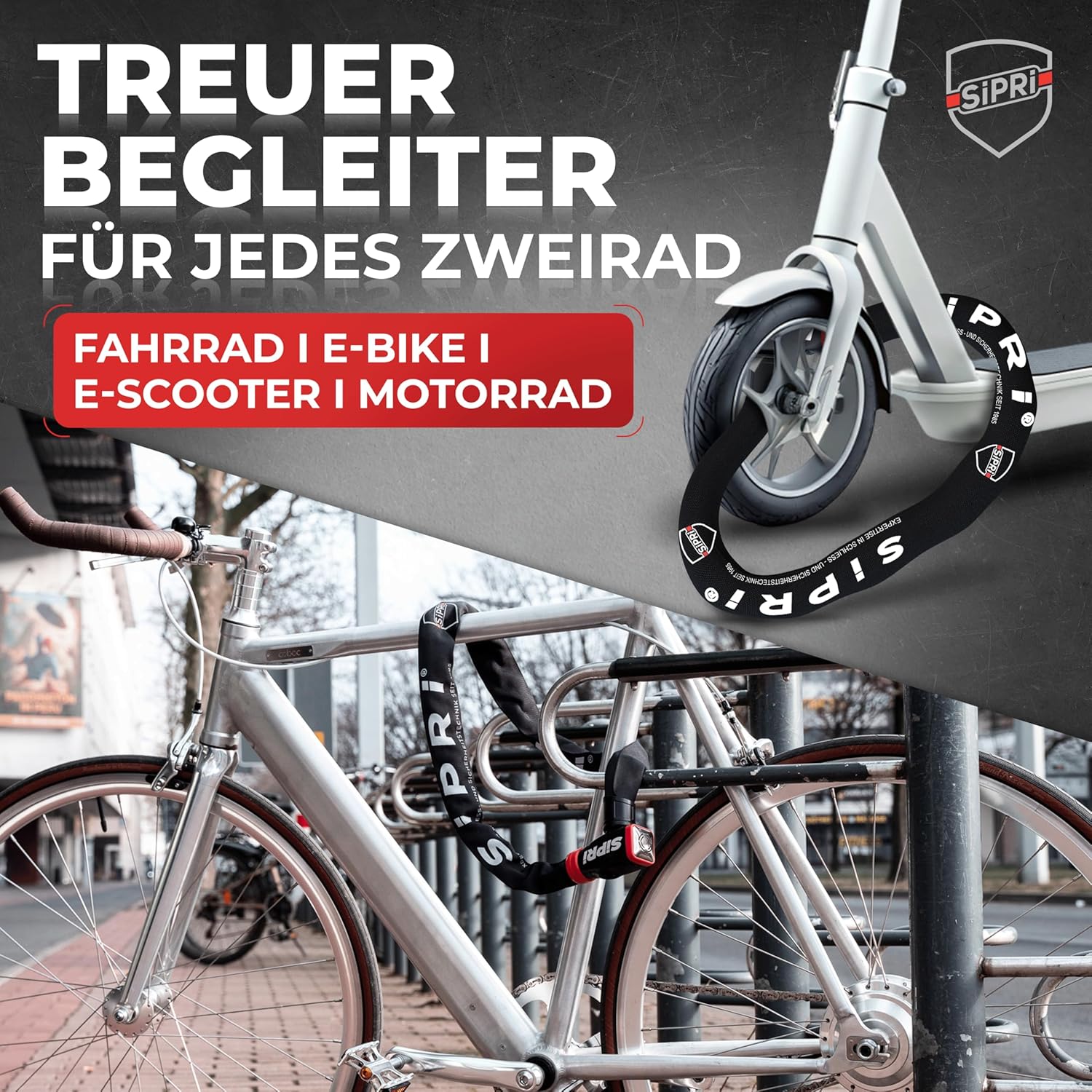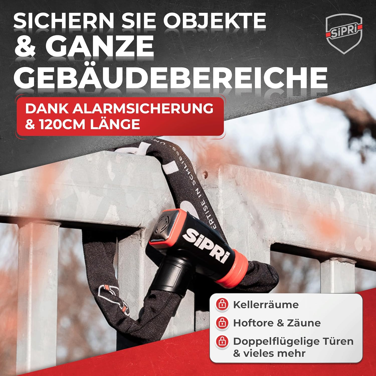 Top-Angebot: SIPRI® Bicycle Lock with Alarm 120 dB Hardened Chain Lock for E-Bike E-Scooter & Motorcycle 8 mm Steel 120 cm Weatherproof Anti-Theft Lock with Key Robust & Secure