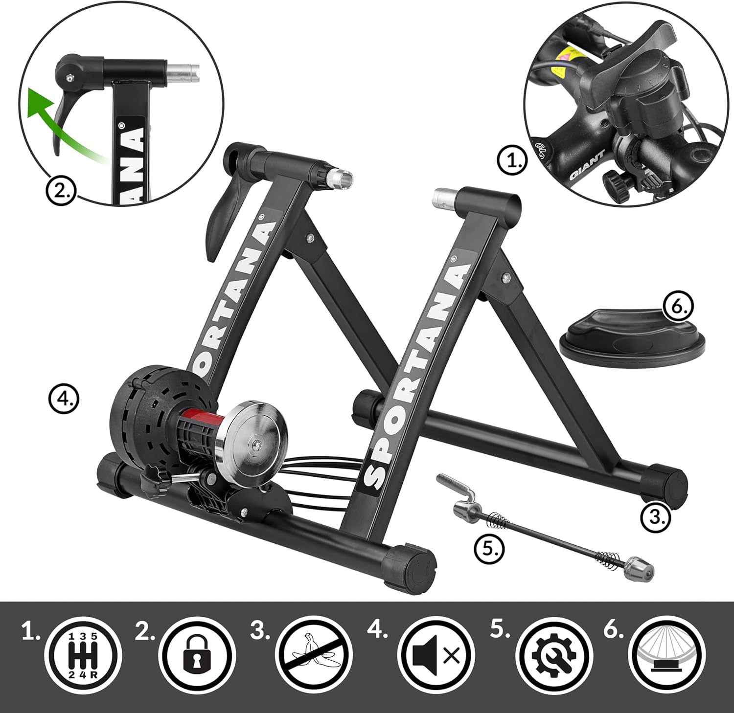 Top-Angebot: Sportana Home Trainer for 26-28 Inches/ 66 cm – 71 cm Bicycles, Roller Trainer for Indoor Cycling with 6 Resistance Levels, Magnetic Gear, Bicycle Trainer, Exercise Bike, 150 kg Maximum Load