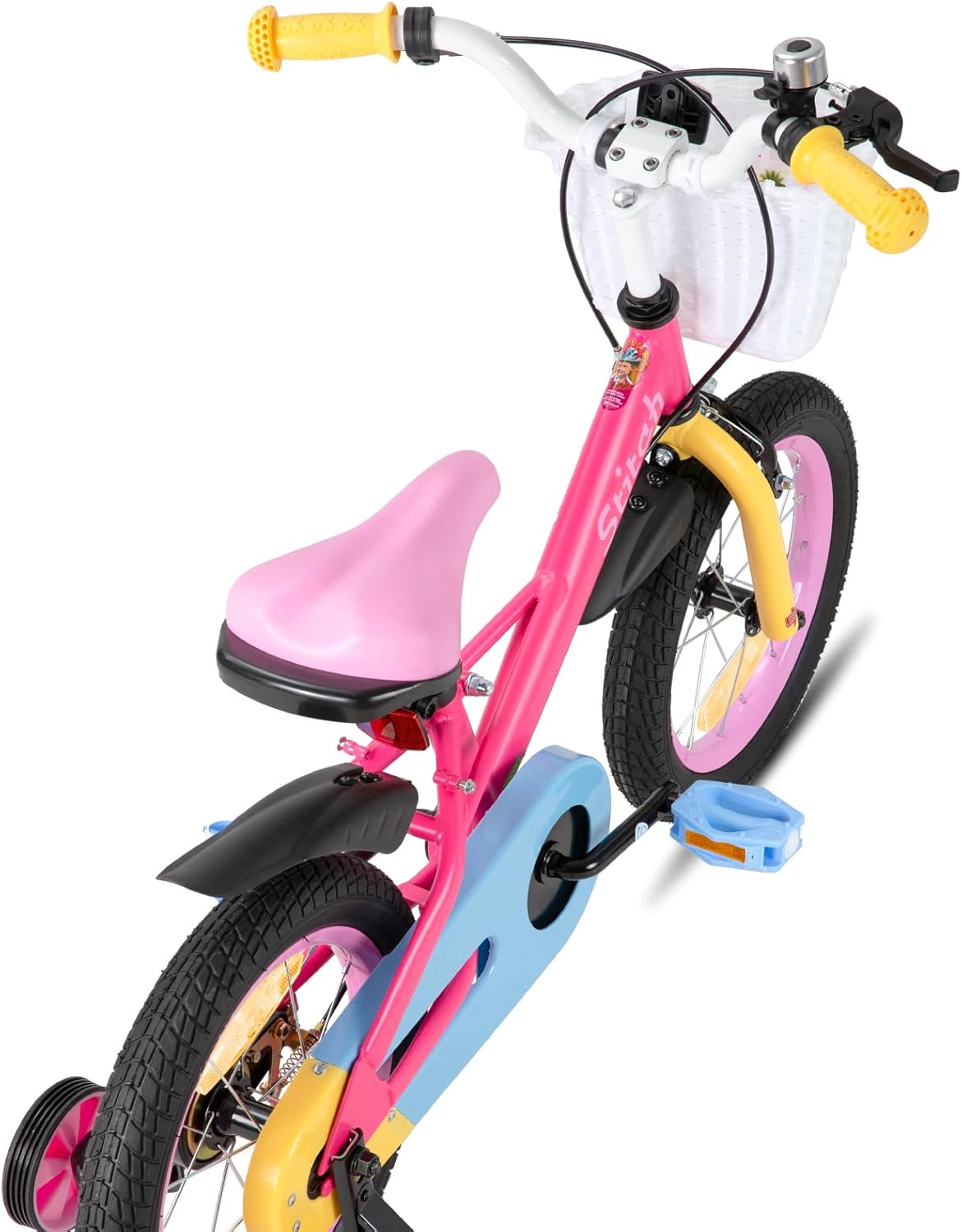 Das STITCH Macaron 12/14/16/18 Zoll Kinderfahrrad für 2-9 jährige Mädchen & Jungen, 12/14/16/18 Zoll Mädchenfahrrad mit Korb & Stützrädern ist ideal für Alltagspendler, die ein zuverlässiges Fahrrad suchen.