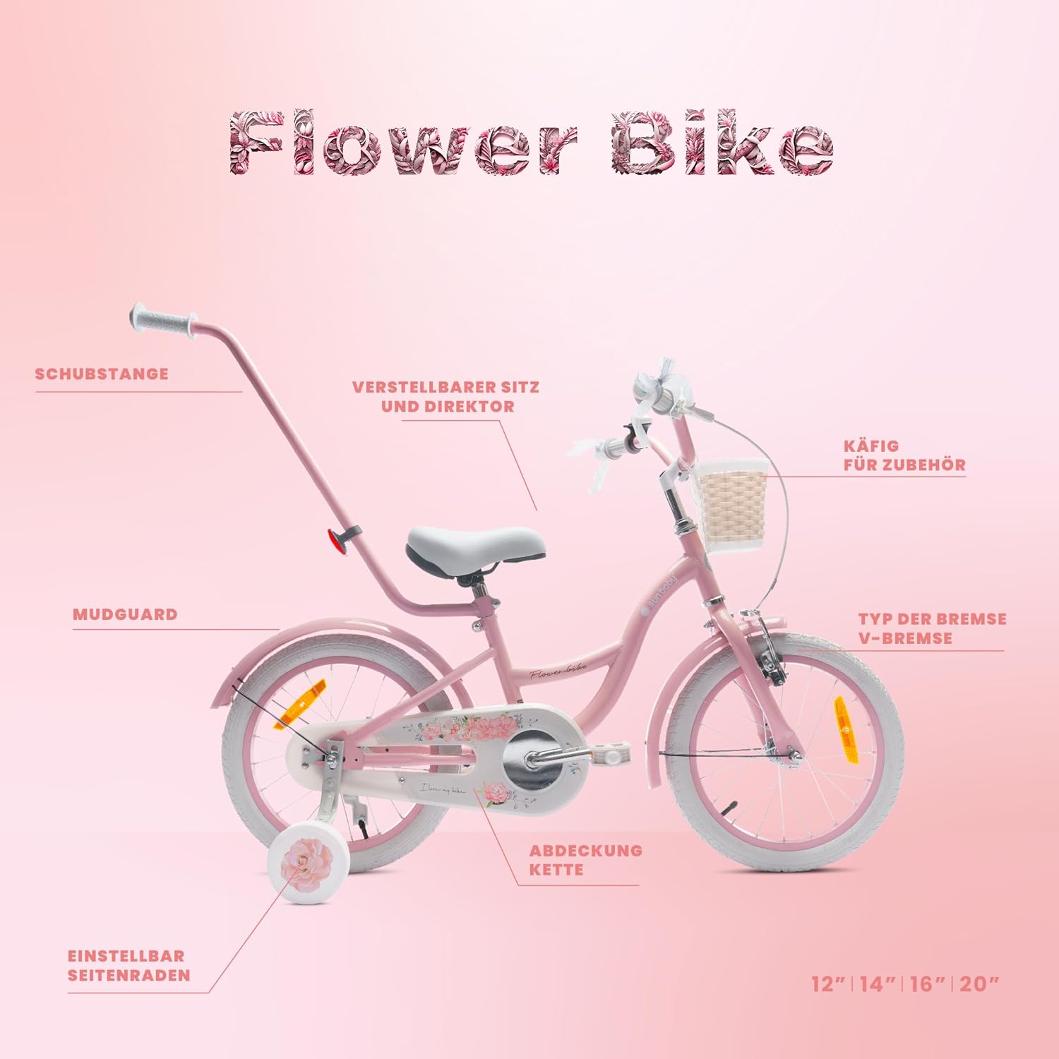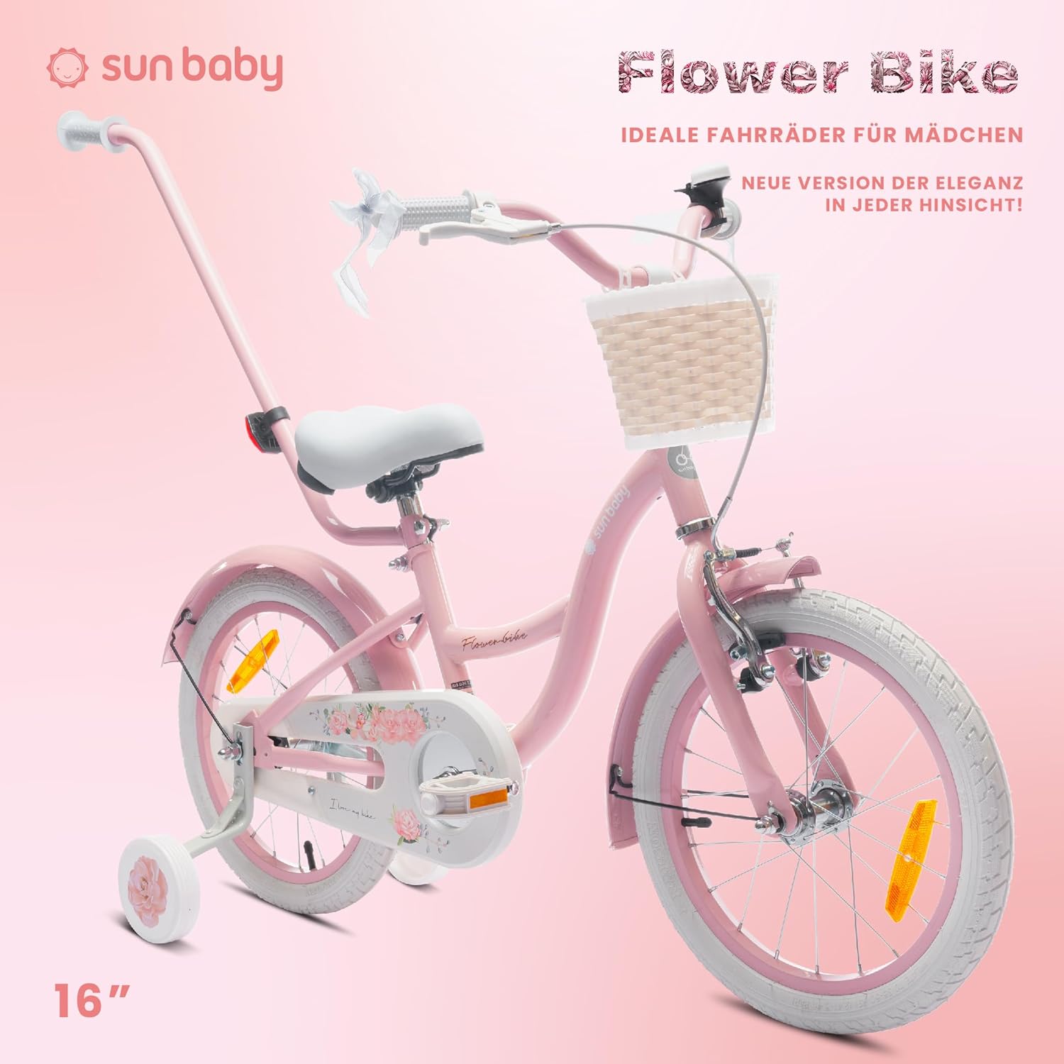 Mit dem sun baby Girls‘ Bicycle Flower Bike Wheel Size to Choose From, with Removable Push Bar, Children’s Bicycle for Girls from 2 to 6 Years bekommst du Qualität, Komfort und Stil – perfekt für deine nächste Tour.