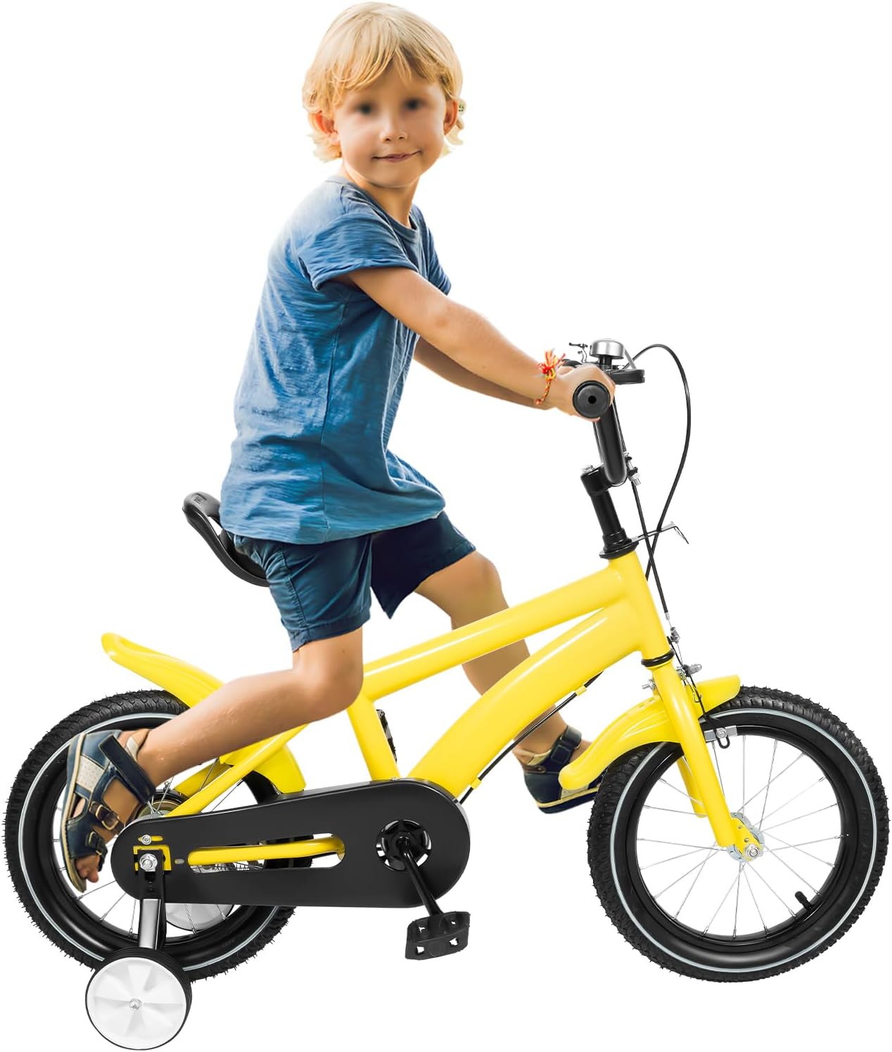 Top-Angebot: Tagowao 14 Inch Children’s Bicycle with Stabilisers, Height Adjustable, Children’s Bicycle for Boys and Girls, Youth Bicycle for Outdoor Riding, Yellow