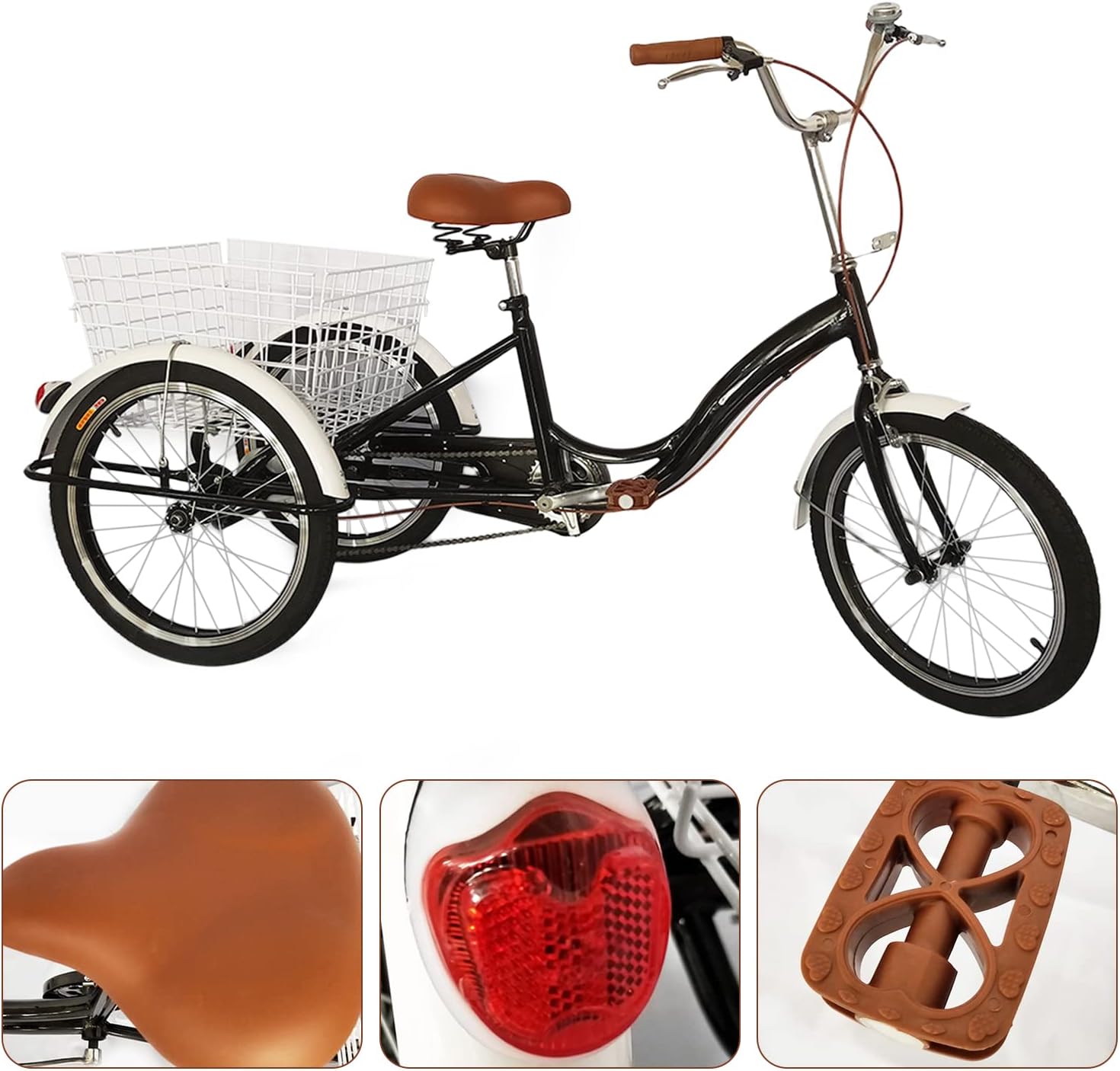 Das Taozhiyy 26 Inch Tricycle for Adults, 6 Gears Cruise City Bikes with Shopping Basket, Front and Rear Disc Brakes, 3 Wheel Premium Bicycle for Travel, Cycling and Shopping, Black ist ideal für Hobbyradler, die ein zuverlässiges Fahrrad suchen.