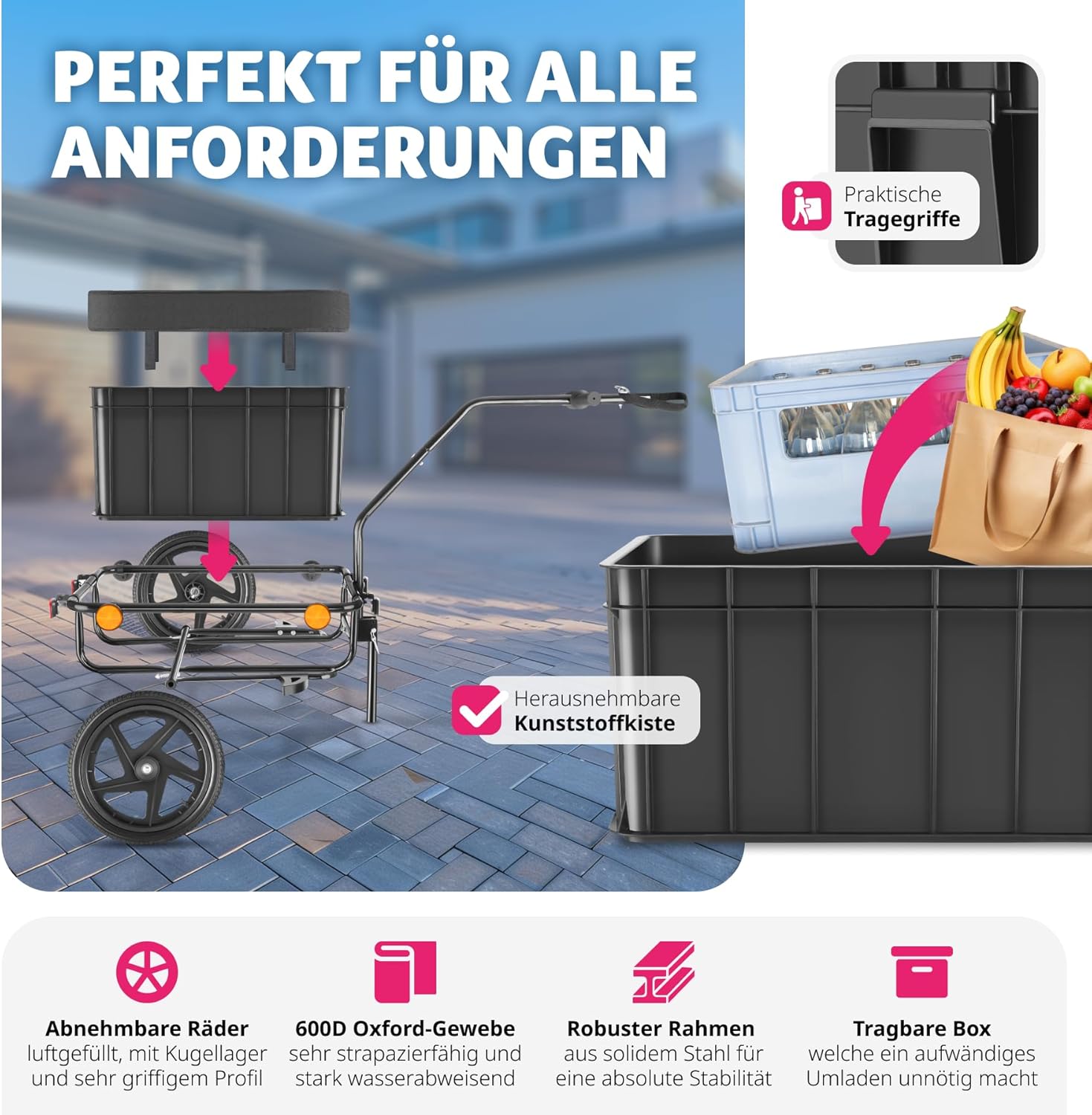 Mit dem tectake® 2 in 1 Bicycle Trailer, Cargo Trailer and Hand Trolley, Accessories for Bicycle, Mountain Bike and eBike, Transport Trolley with Towing Hitch with Cover Tarpaulin and Pneumatic Tyres bekommst du Qualität, Komfort und Stil – perfekt für deine nächste Tour.
