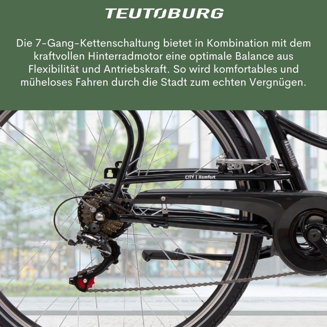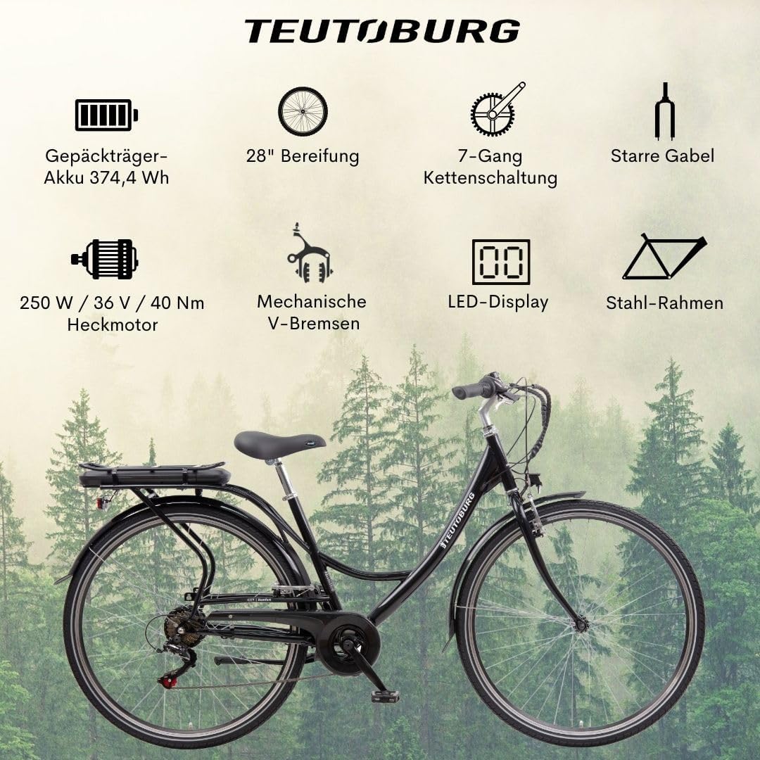 Top-Angebot: Teutoburg Senne Fahrrad Pedelec Citybike Elektrofahrrad schwarz, E-Bike 28 Zoll, 10,4 Ah/36V Lithium Ionen Akku, 7-Gang Shimano-Kettenschaltung