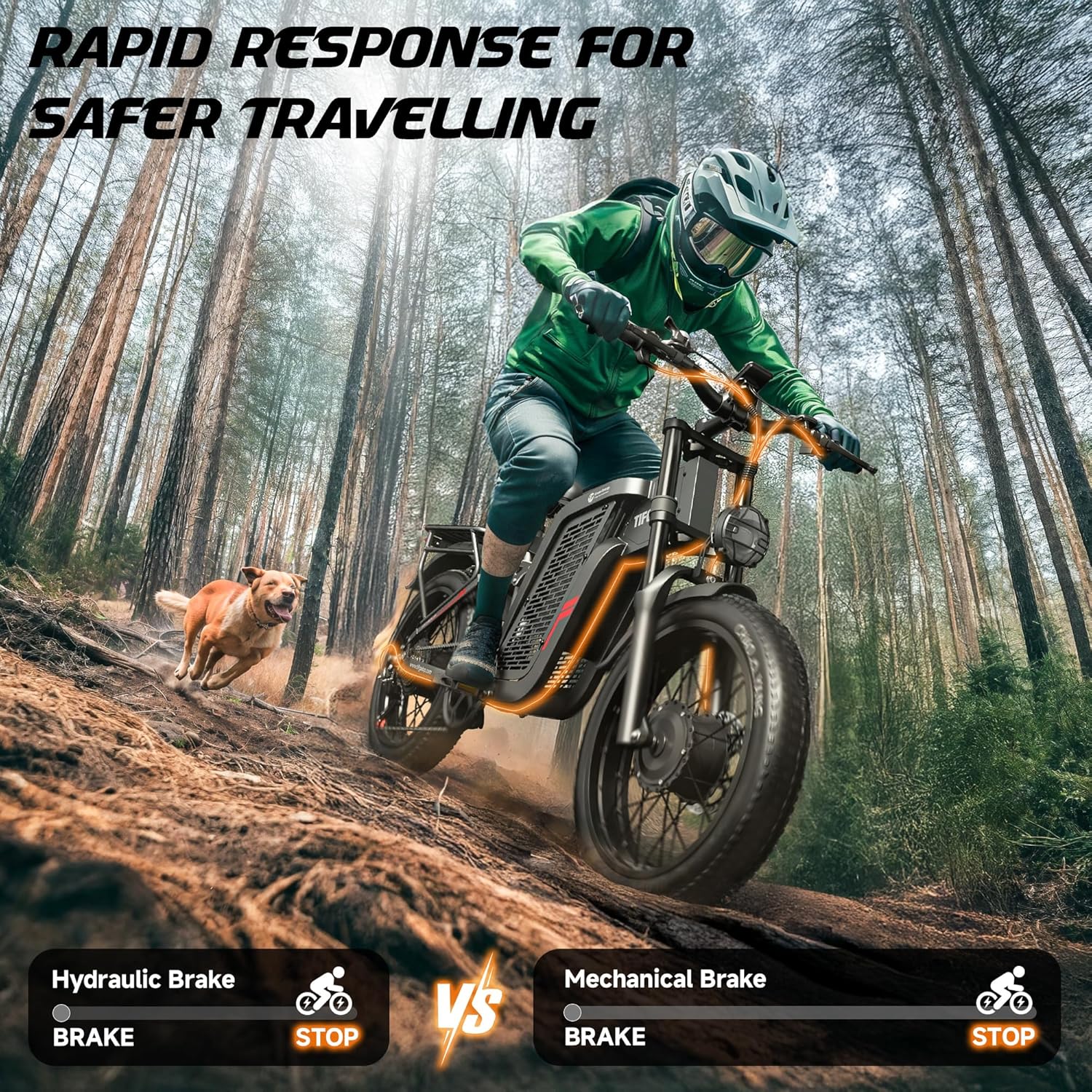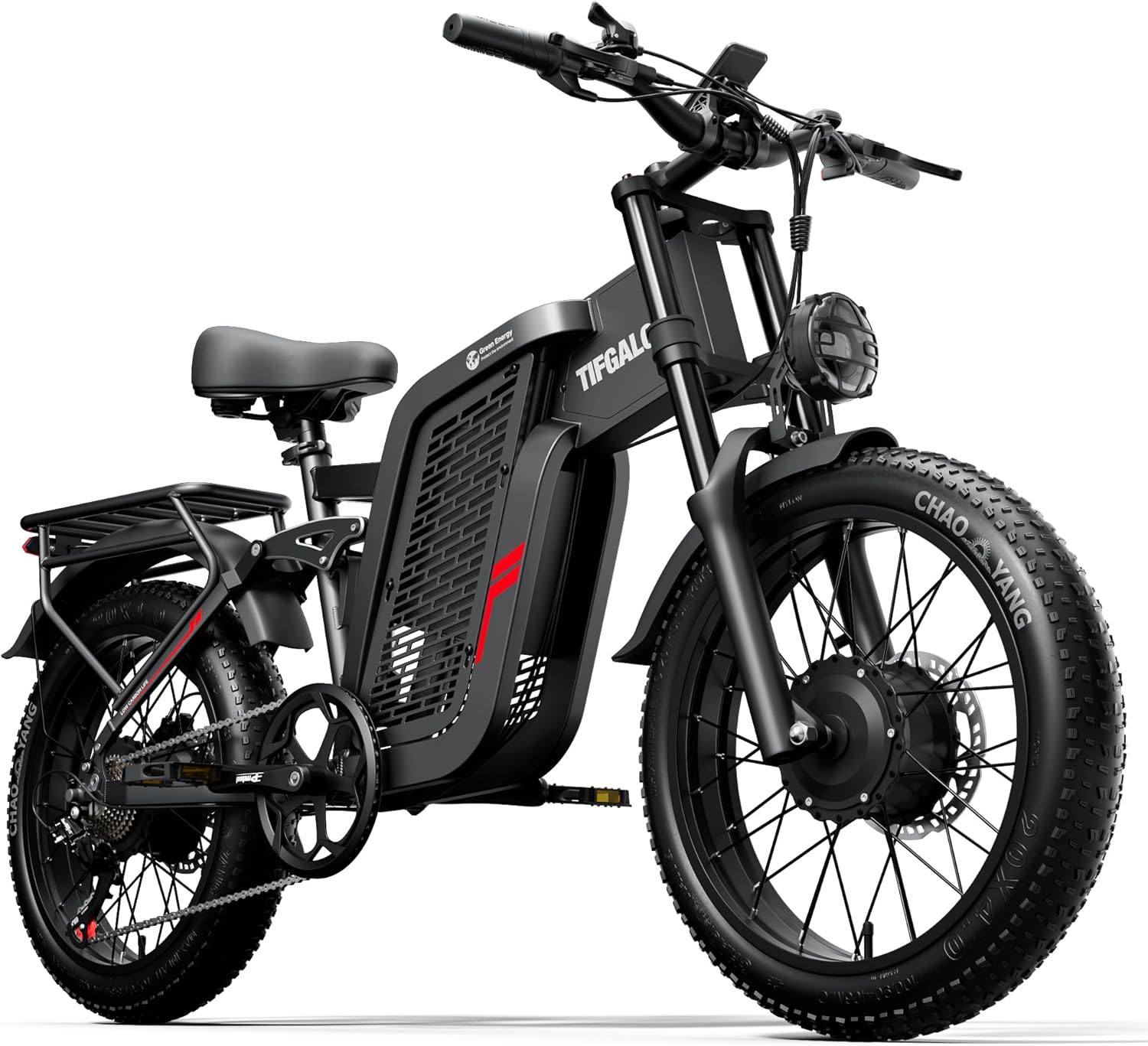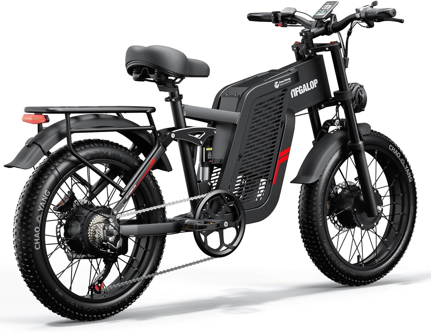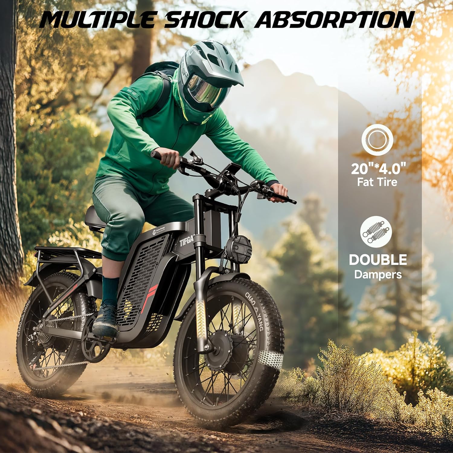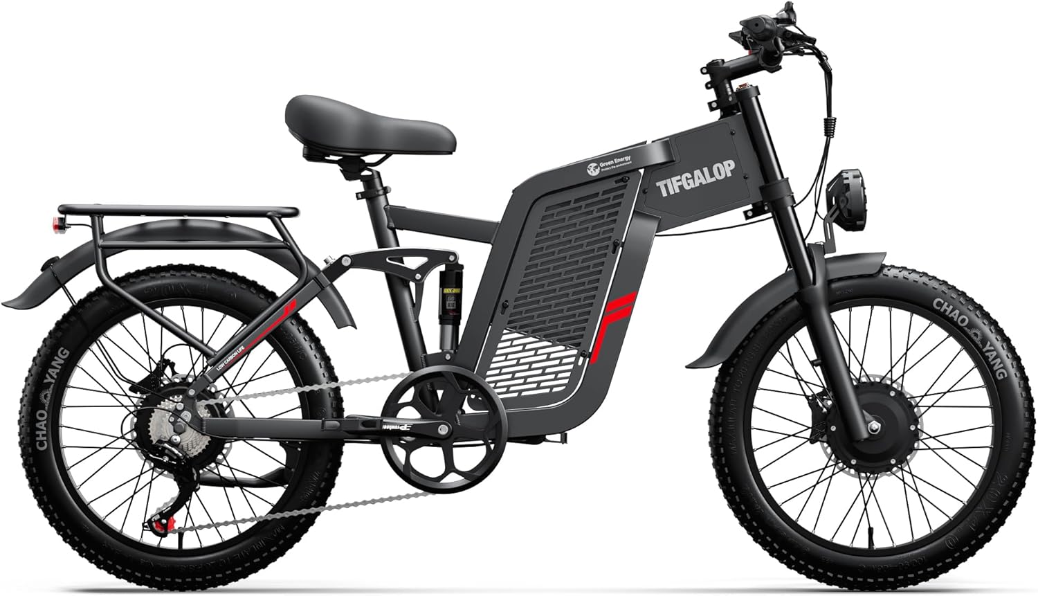 Top-Angebot: tifgalop Adult Electric Bicycle, Powerful Double Motors, 52V 24Ah Li-ion Battery, 20″ Wide Tyres, Double Hydraulic Disc Brakes, Full Suspension, 7 Speed Electric Bicycle