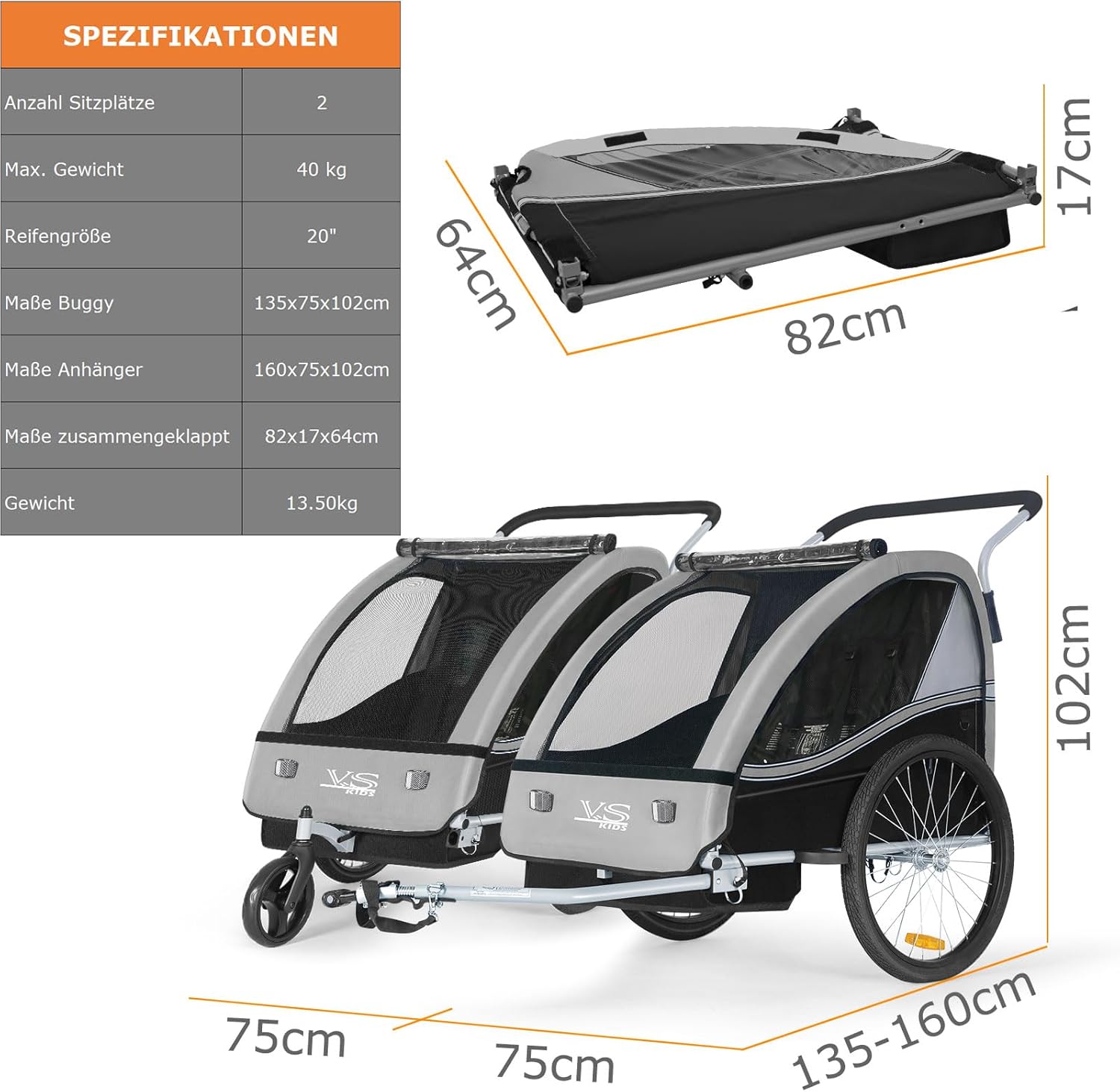 Top-Angebot: Tiggo VS 2-in-1 Children’s Trailer Bicycle Trailer with Buggy Set Jogger 50202