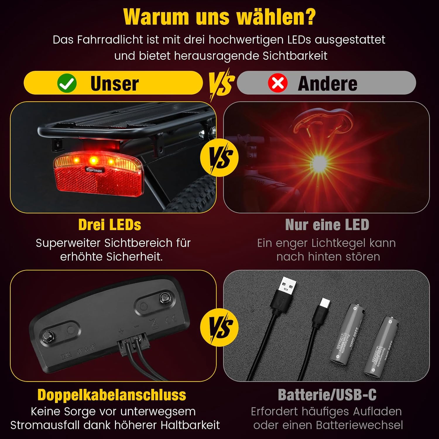 Top-Angebot: toptrek Bicycle Rear Light Dynamo and E-Bike, StVZO Approved Rear Light Bicycle Pannier Rack with Reflector, LED Rear Light Bicycle Dynamo with 7 Candela, 8 cm Hole Spacing, IPX4 Waterproof